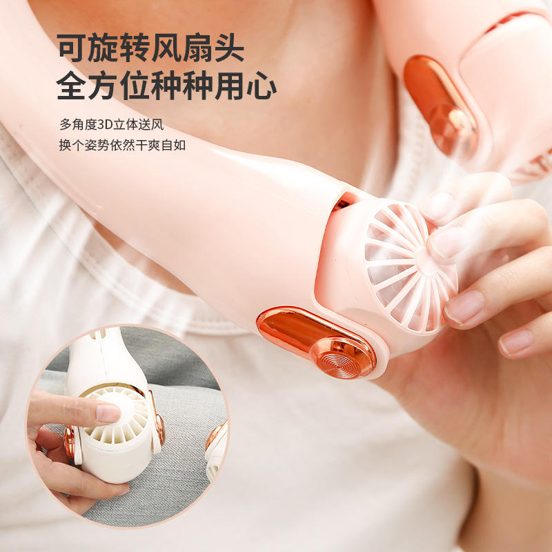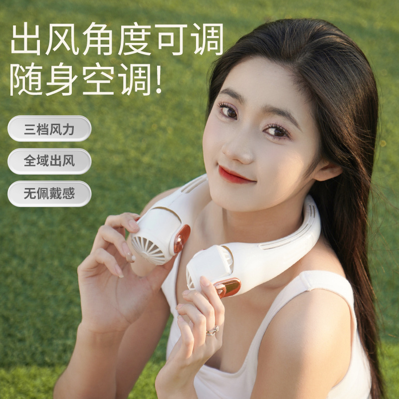 跨境新品三档调速大风力颈部挂脖风扇 户外旅行露营便携充电风扇