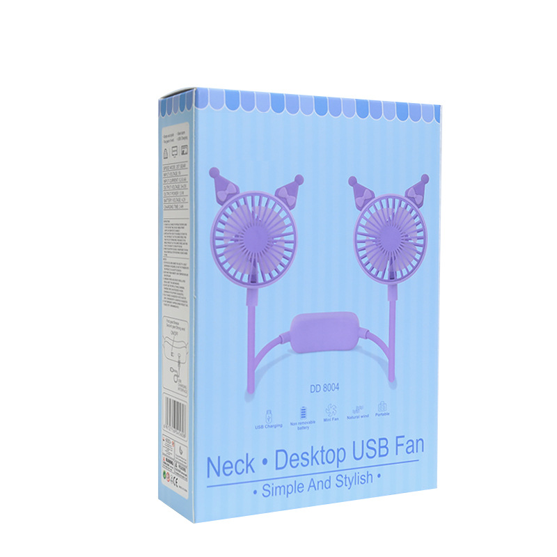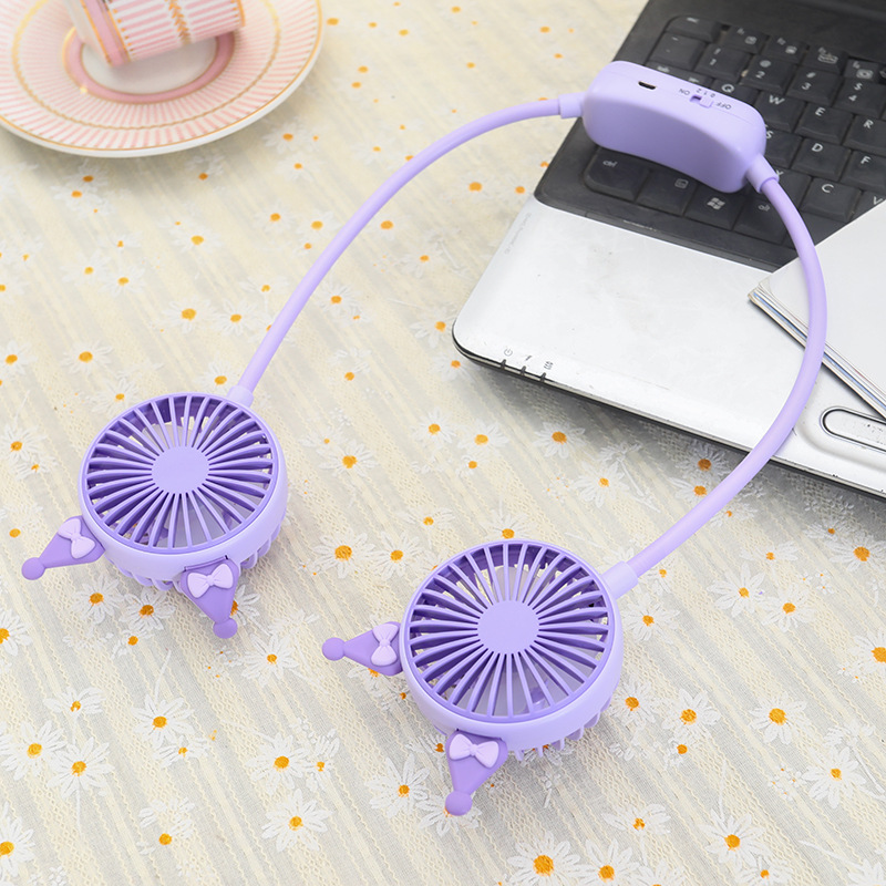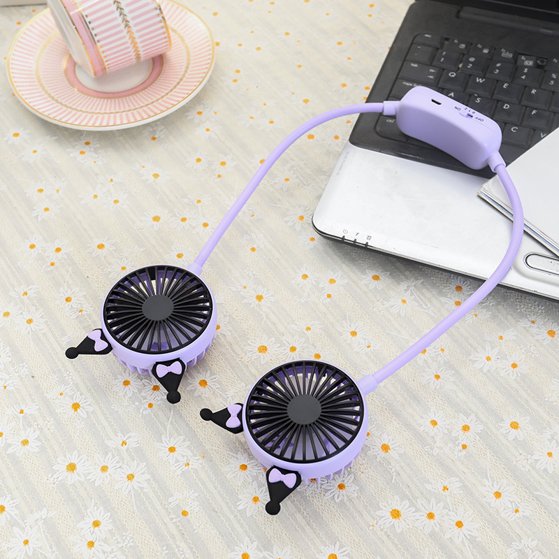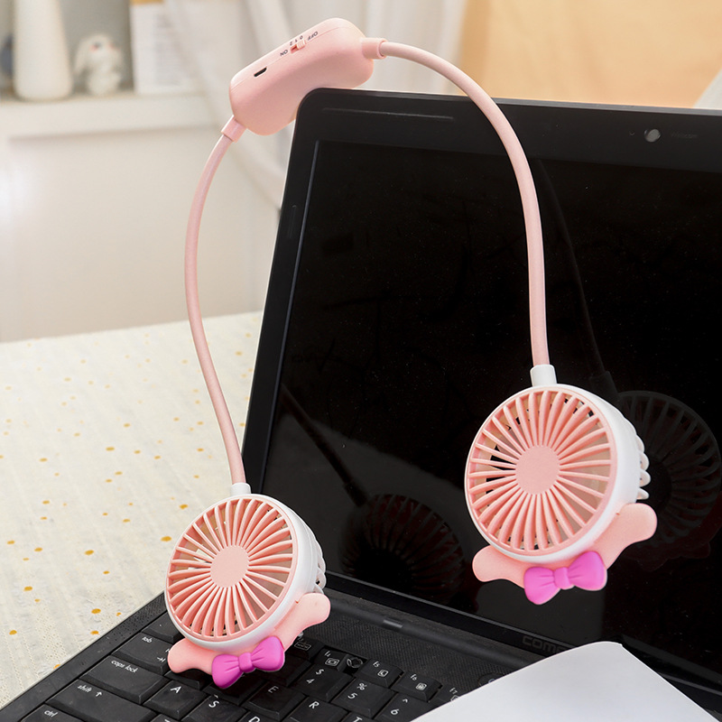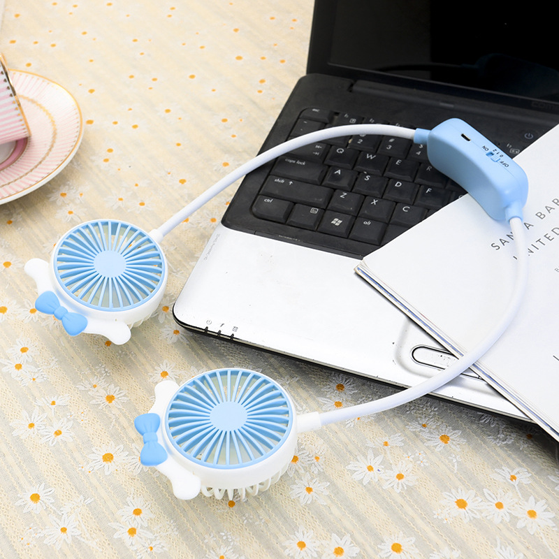 学生夏季新款卡通挂脖风扇 usb充电可折叠软管二档大风力风扇礼品