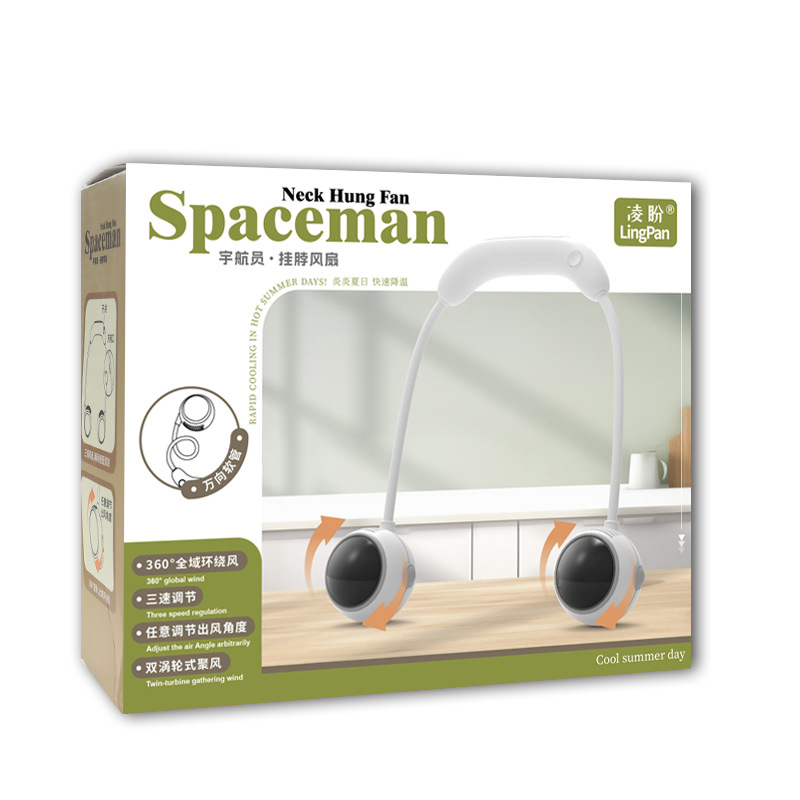 时尚太空人涡轮无叶挂脖风扇 户外旅行三档风懒人便携式充电风扇