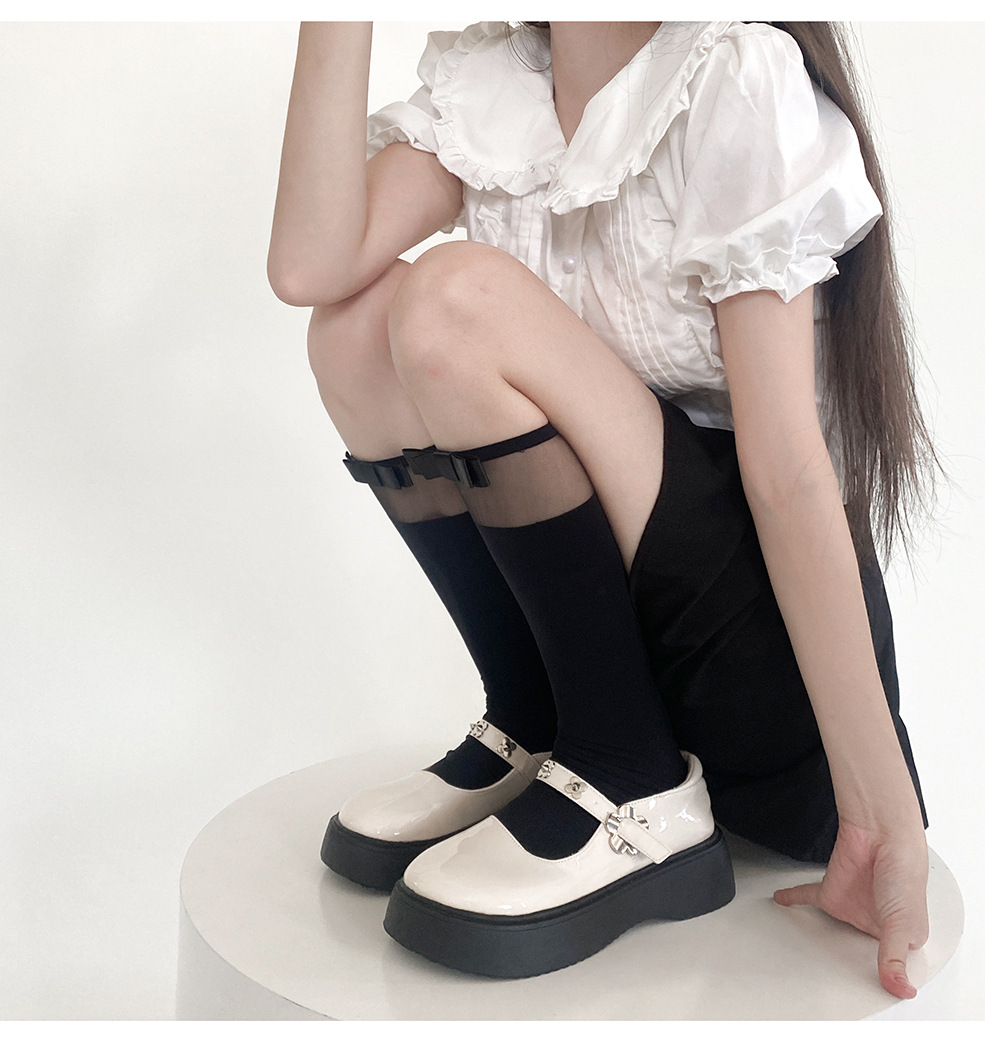 jk辣妹黑色中筒袜夏季性感显瘦白色天鹅绒网纱拼接蝴蝶结小腿袜女