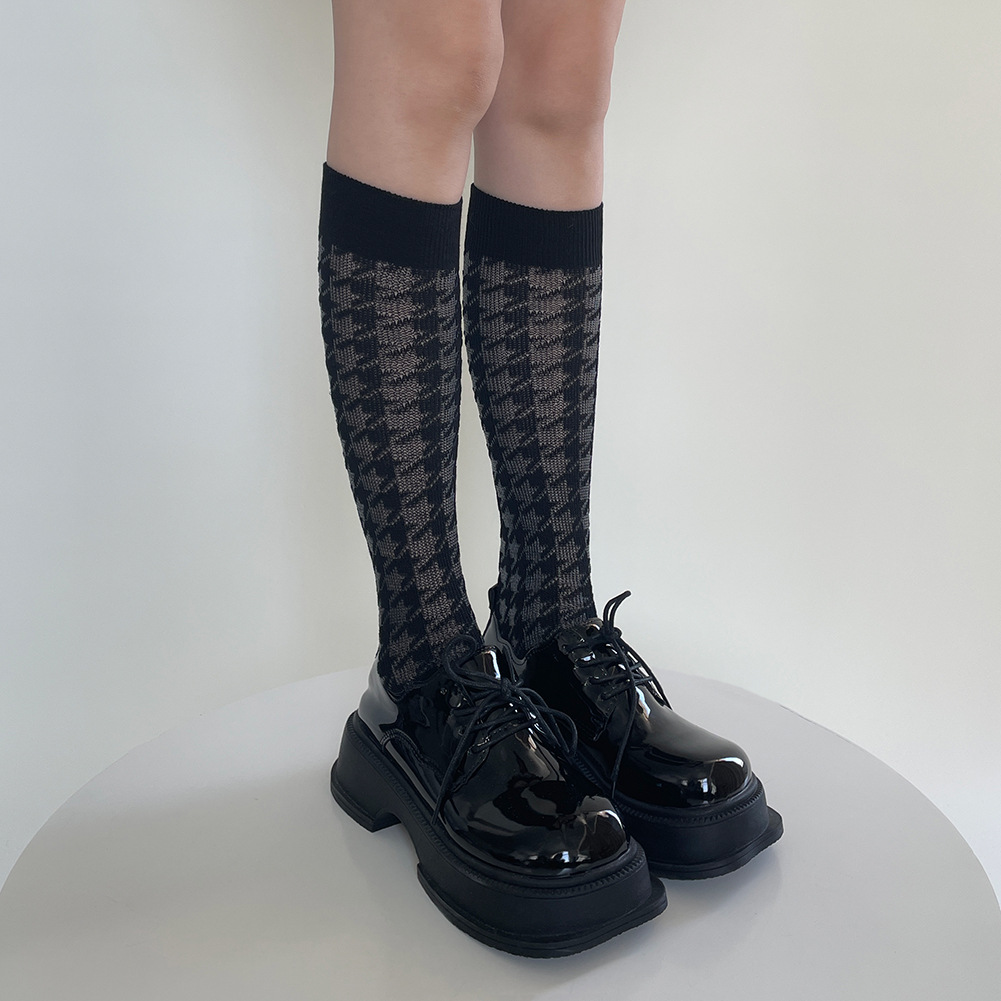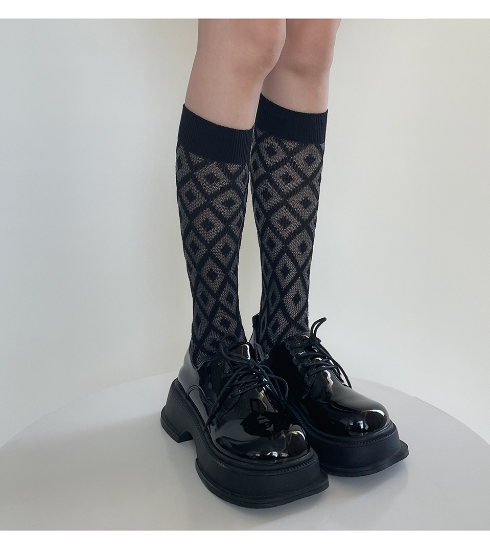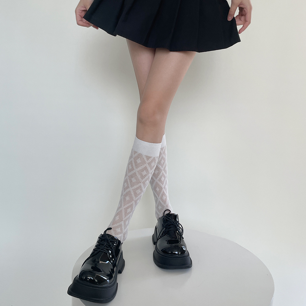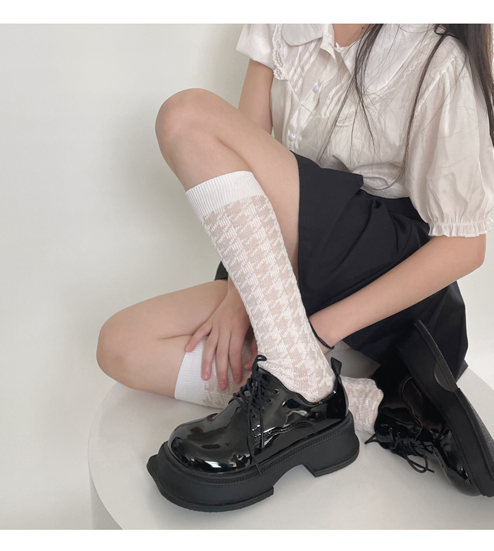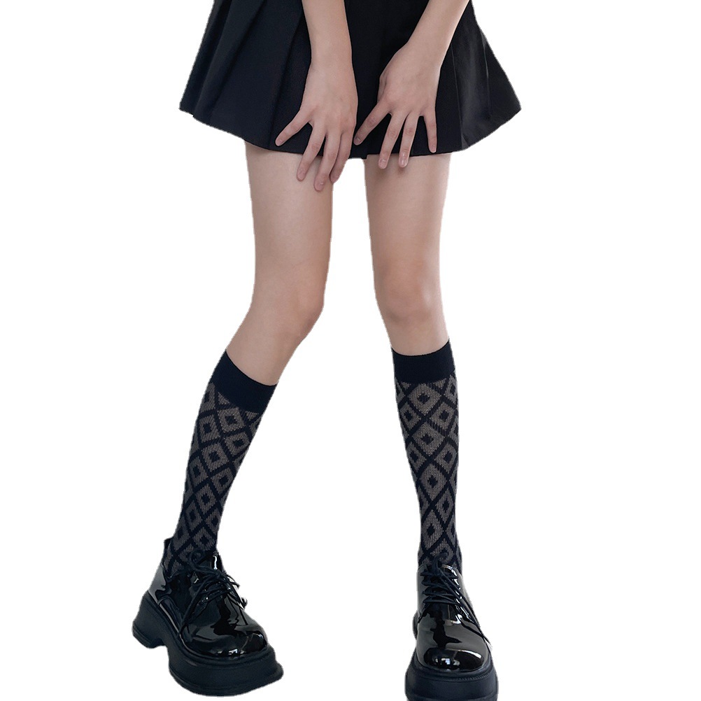 jk袜子日系百搭春夏款菱形格小腿袜女潮ins纯色黑白透气中筒袜潮