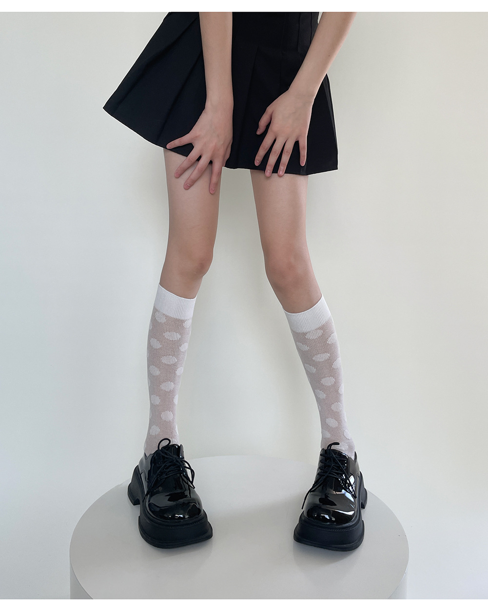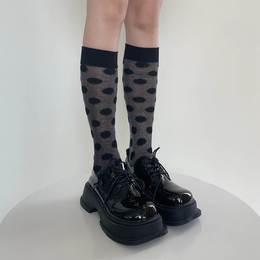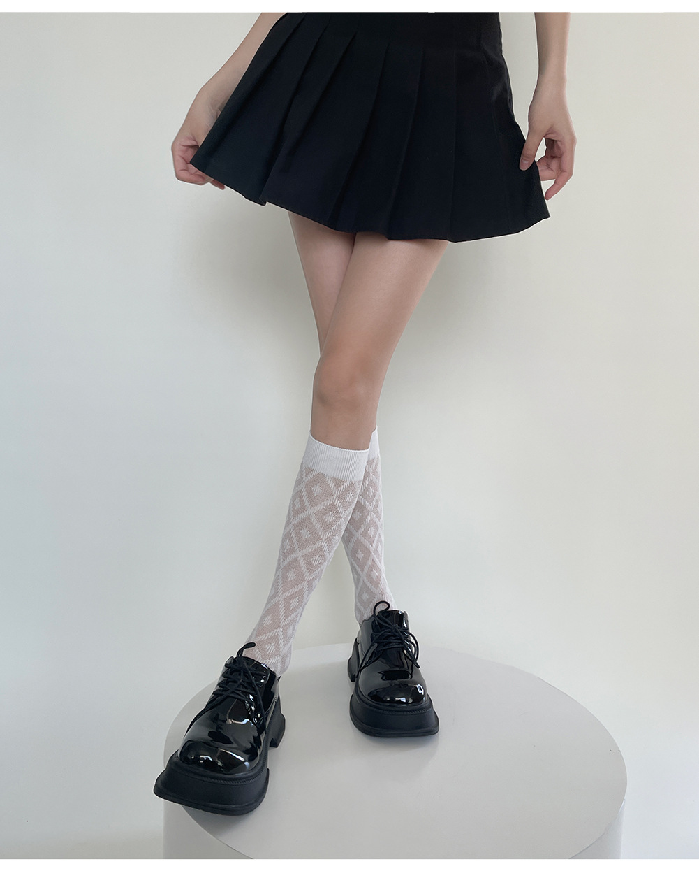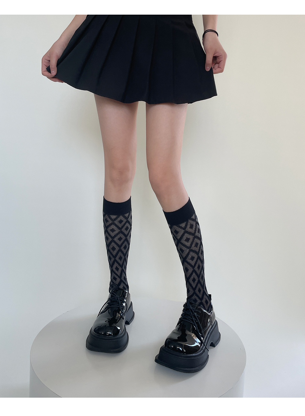 jk袜子日系百搭春夏款菱形格小腿袜女潮ins纯色黑白透气中筒袜潮