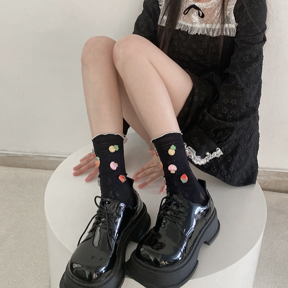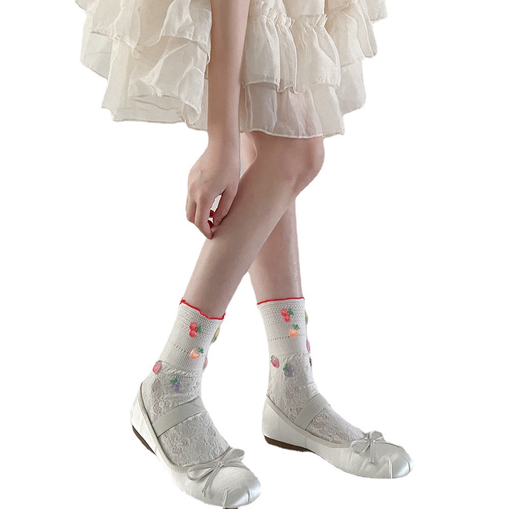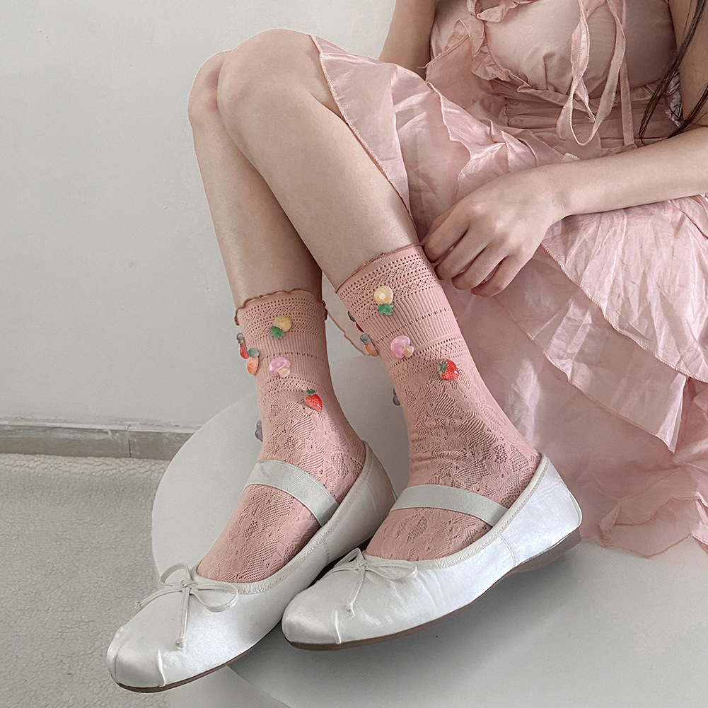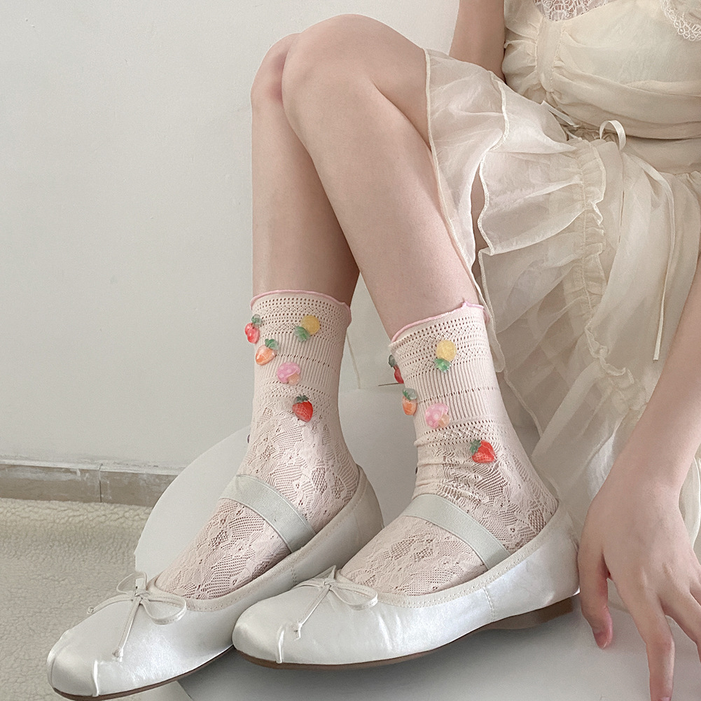 春夏小众设计网红日系水果缤纷奶油泡芙千禧年y2k少女甜美镂空袜