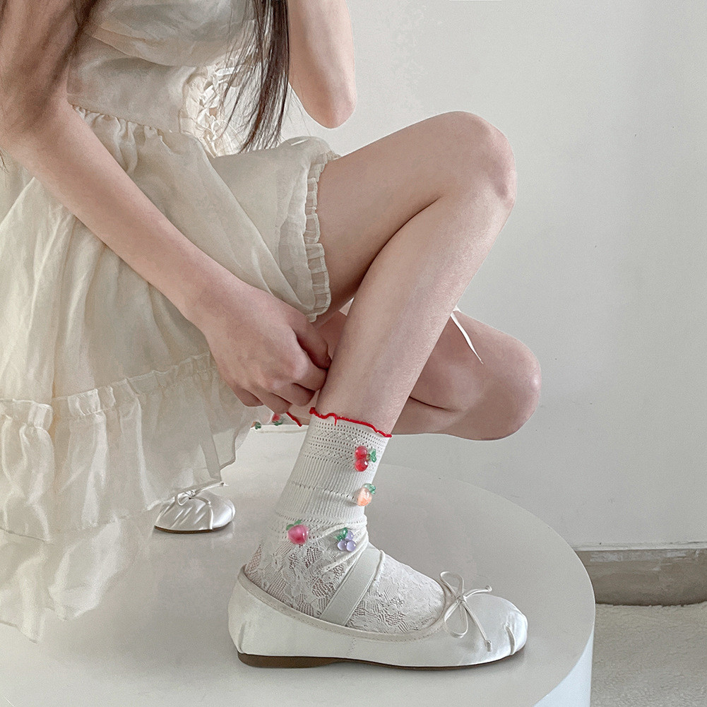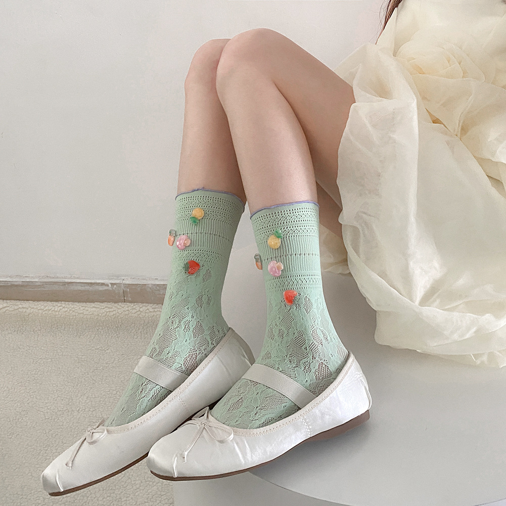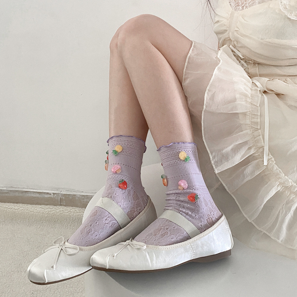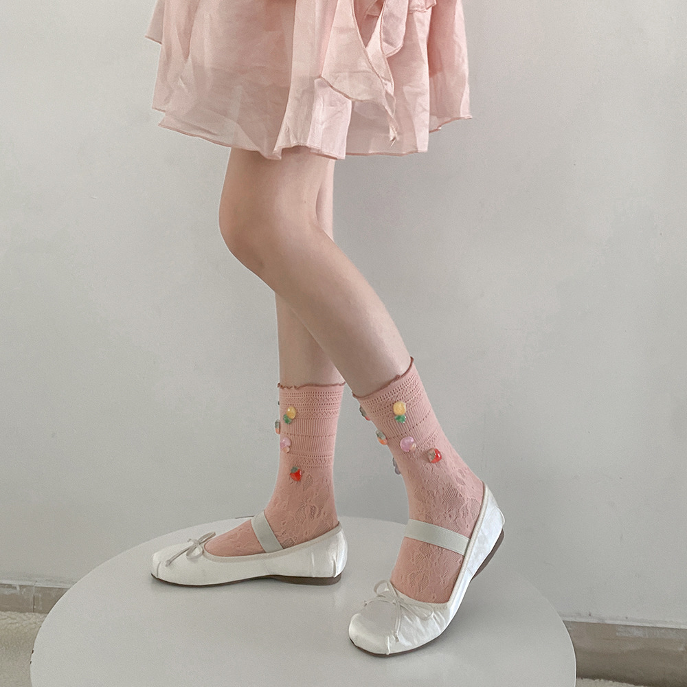 春夏小众设计网红日系水果缤纷奶油泡芙千禧年y2k少女甜美镂空袜