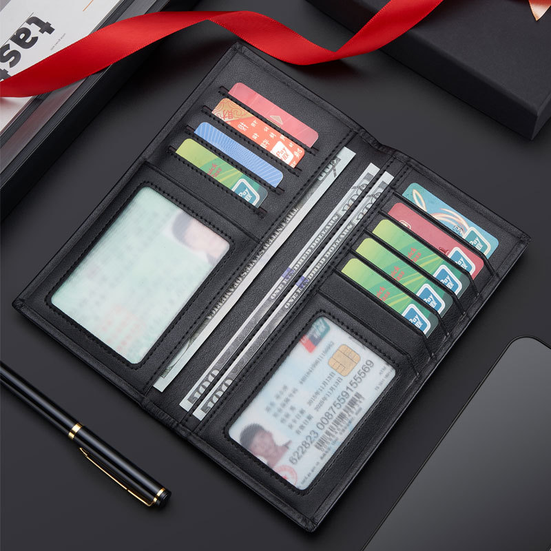 铂士顿保罗男士钱包长款压花头层牛皮钱夹商务皮夹票夹送礼盒