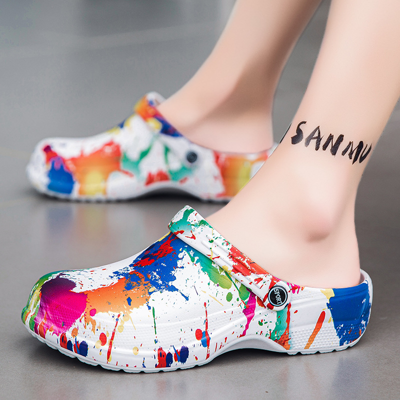跨境洞洞鞋男夏季包头印花沙滩凉鞋男士运动外穿家居沙滩拖鞋