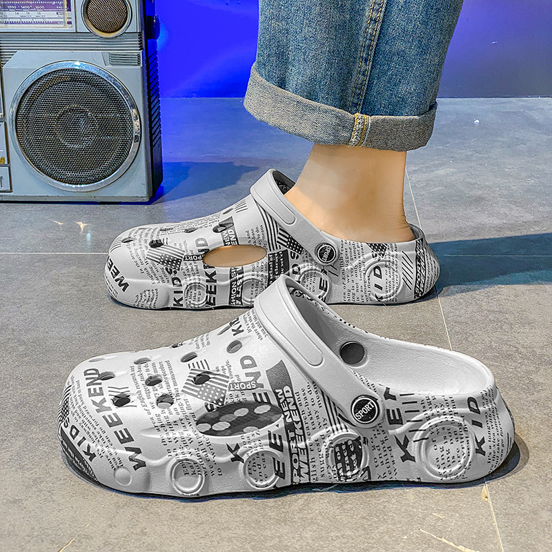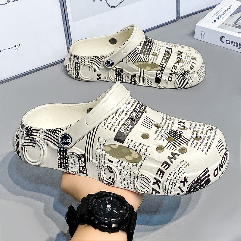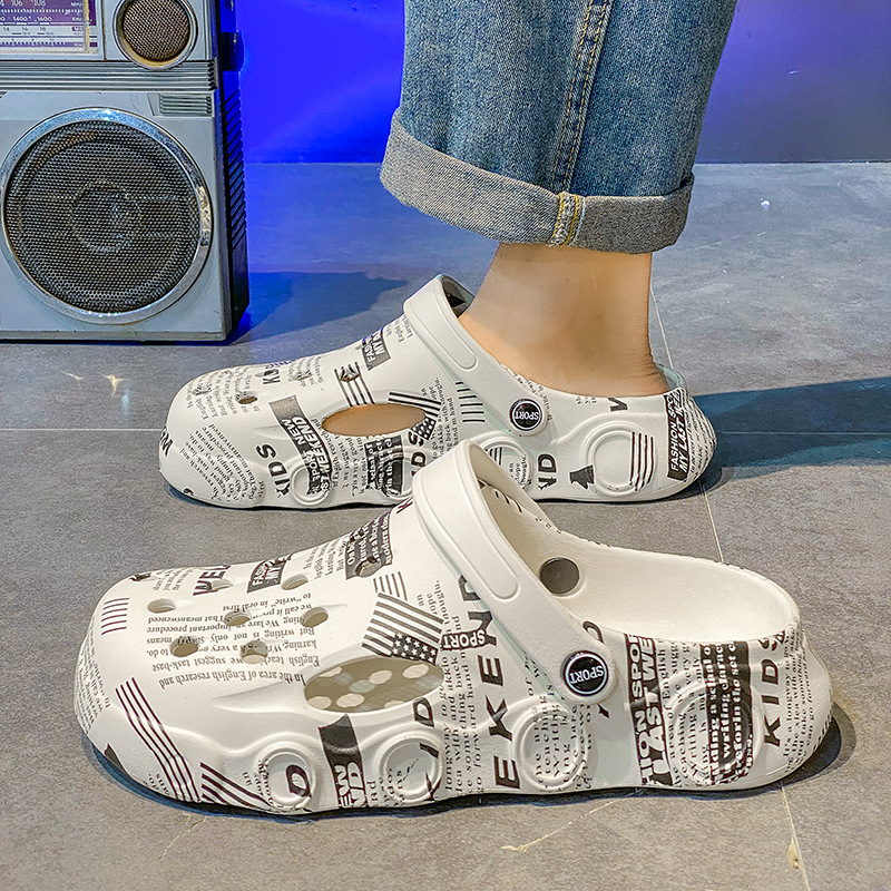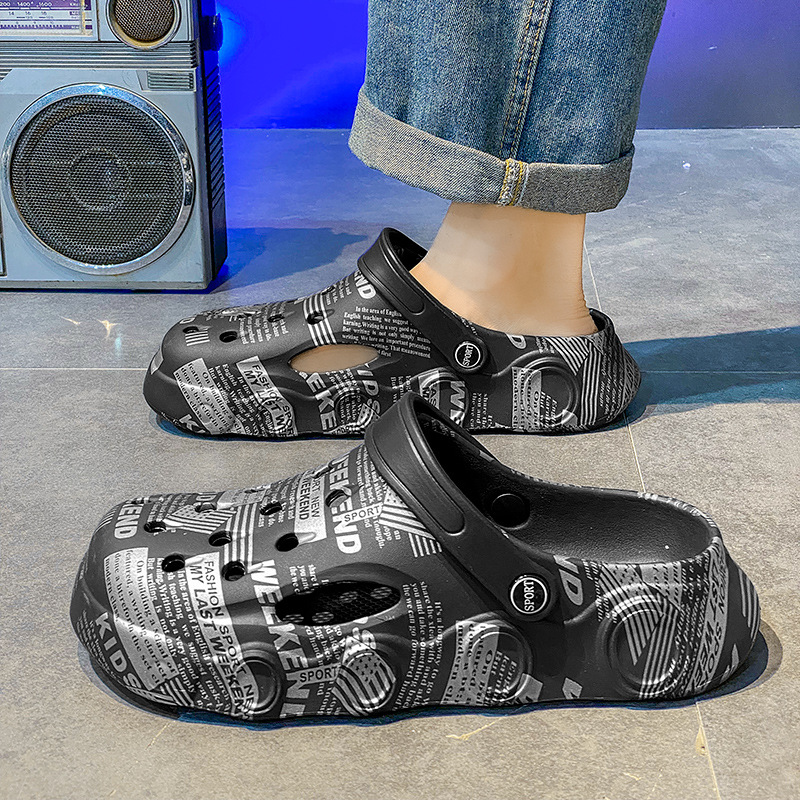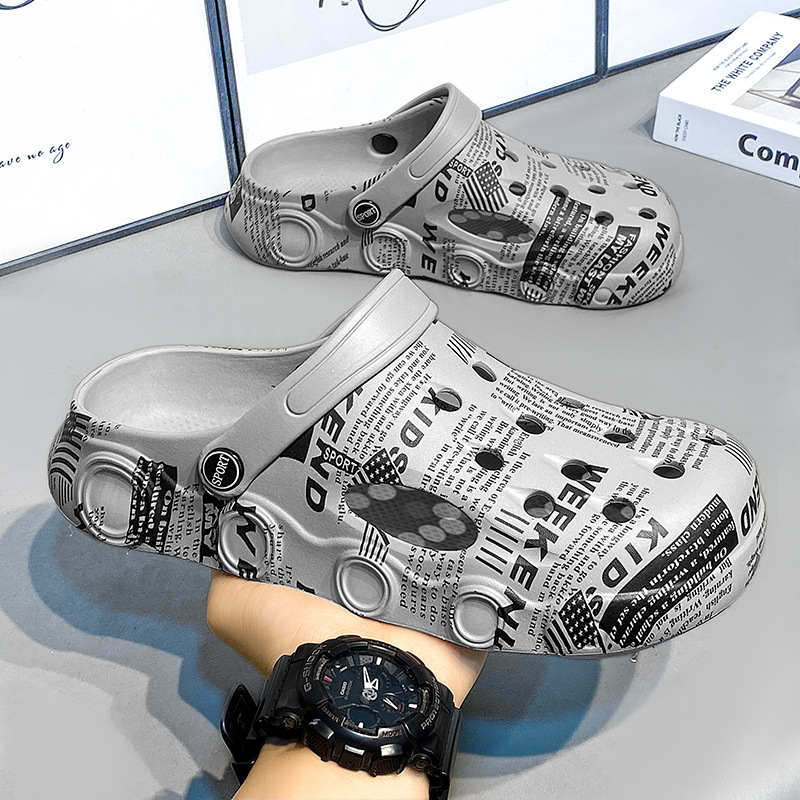 外贸印花凉鞋男士沙滩鞋迷彩洞洞鞋男外出旅游鞋休闲学生凉拖鞋男