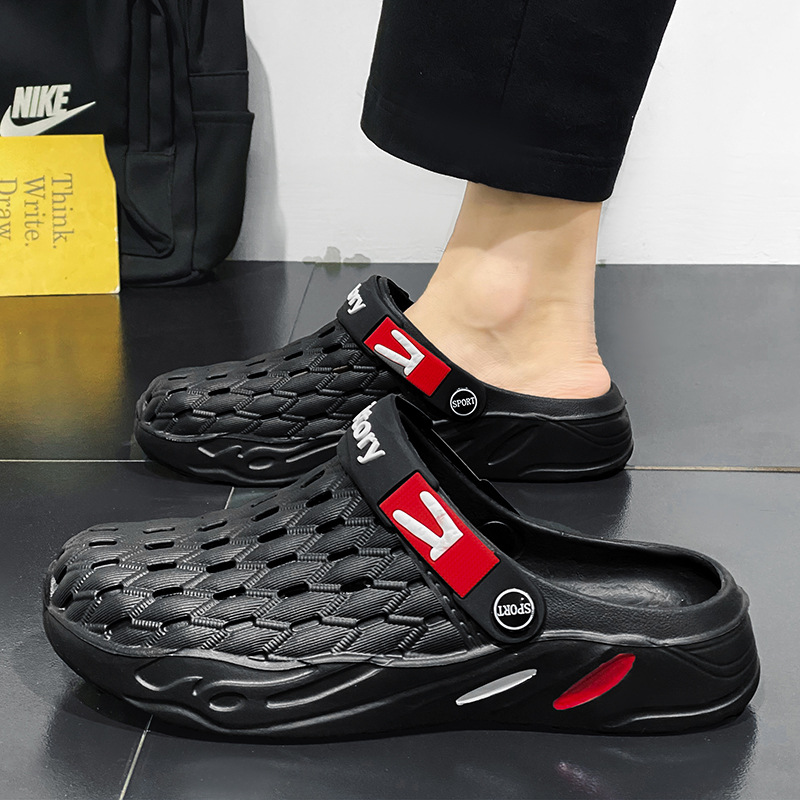 跨境大码洞洞鞋男士拖鞋轻便软底包头拖潮流沙滩鞋男款外贸鞋