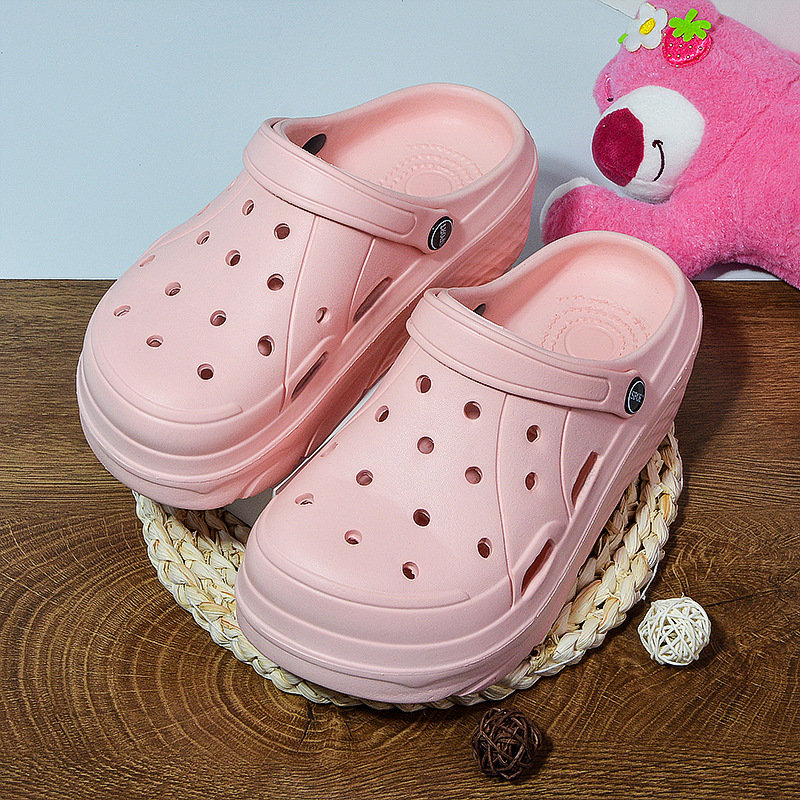 厚底洞洞鞋女沙滩鞋夏季新款外穿时尚松糕鞋室内家居包头凉拖鞋女