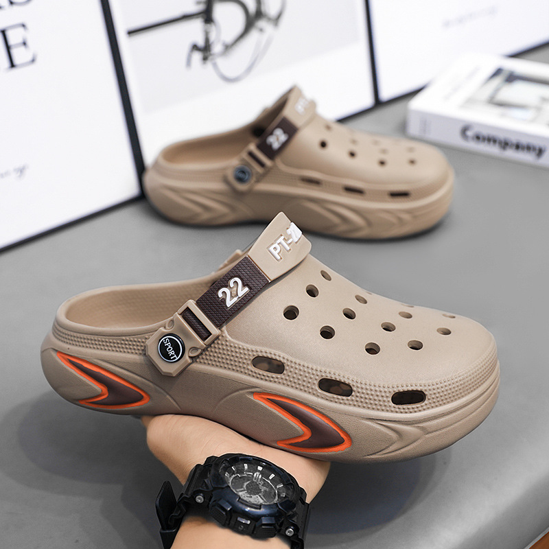 踩屎感洞洞鞋男夏开车EVA软底包头沙滩鞋潮凉鞋室外拖鞋男士外穿