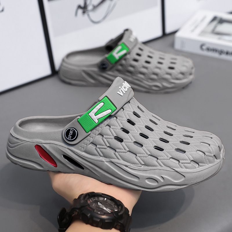 外贸凉拖鞋新款透气沙滩鞋男士洞洞鞋大码49包头拖鞋子男休闲
