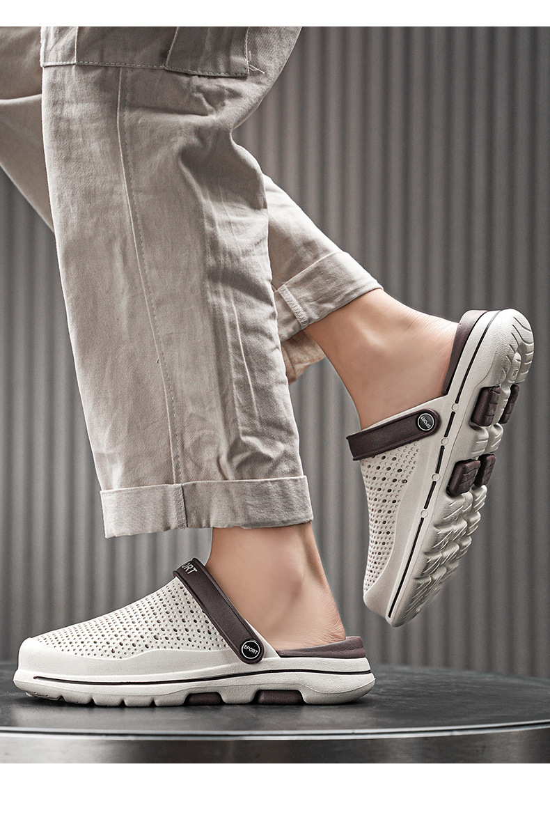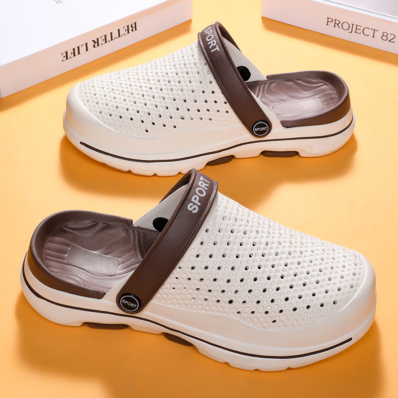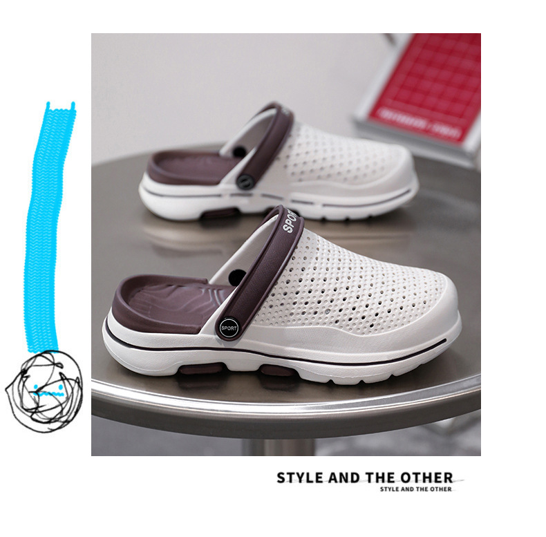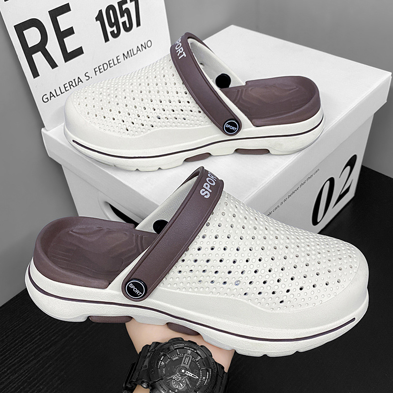 包头凉鞋男夏季外穿沙滩运动凉拖女软底镂空椰子情侣凉鞋洞洞鞋男