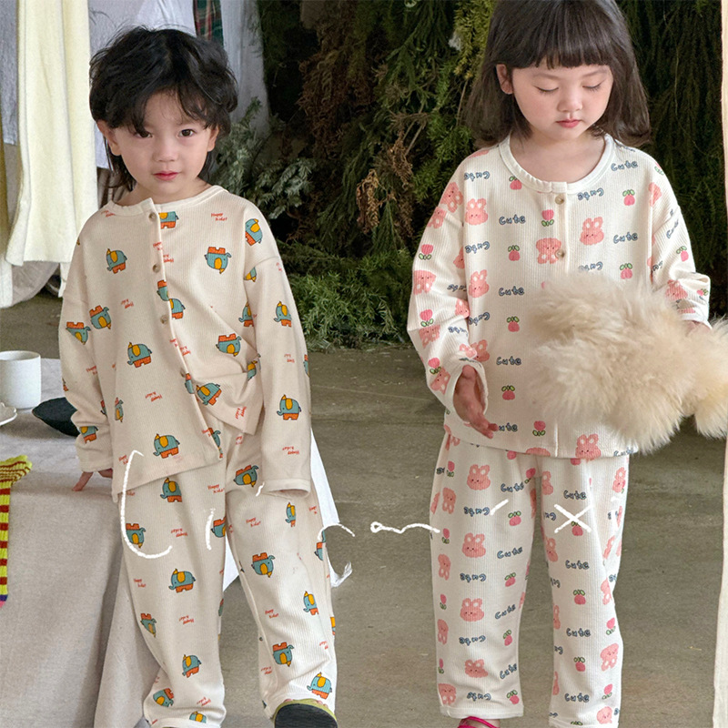 30061家居服套装24春款新品睡衣套印花家居套装开衫套男女童中性