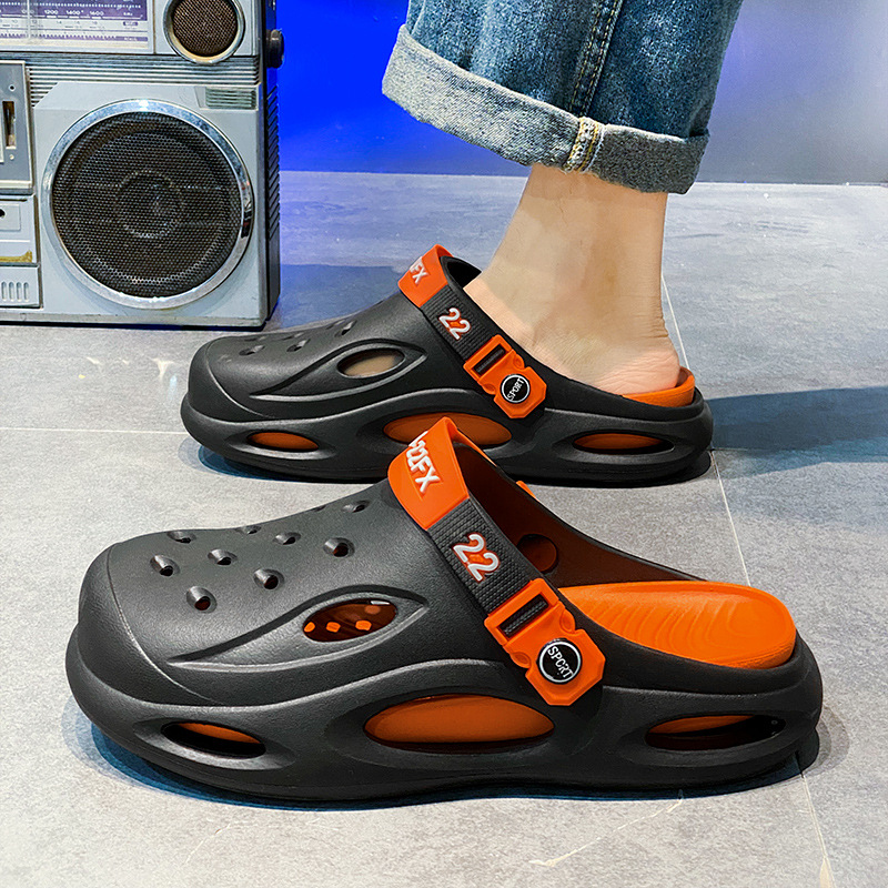 椰子包头洞洞鞋新款凉鞋男士沙滩鞋外出旅游鞋休闲学生凉拖潮