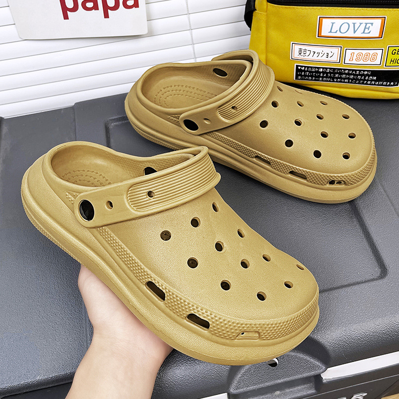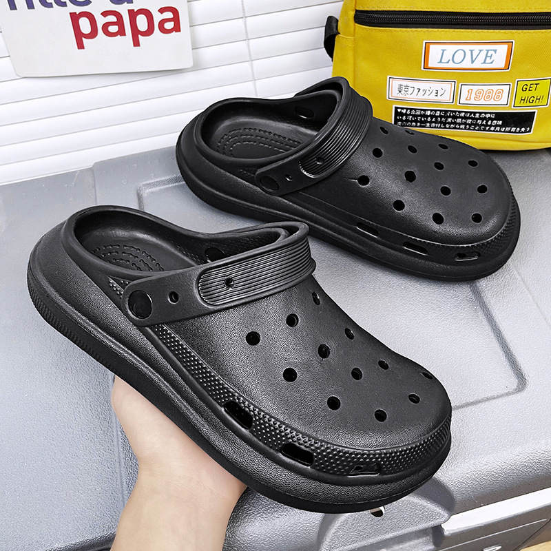 厚底洞洞鞋男士凉鞋外穿轻便透气沙滩鞋男家居增高花园鞋男凉拖男