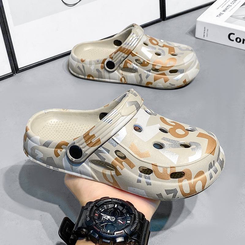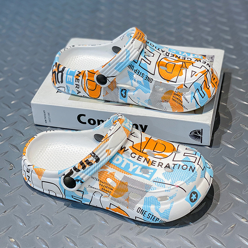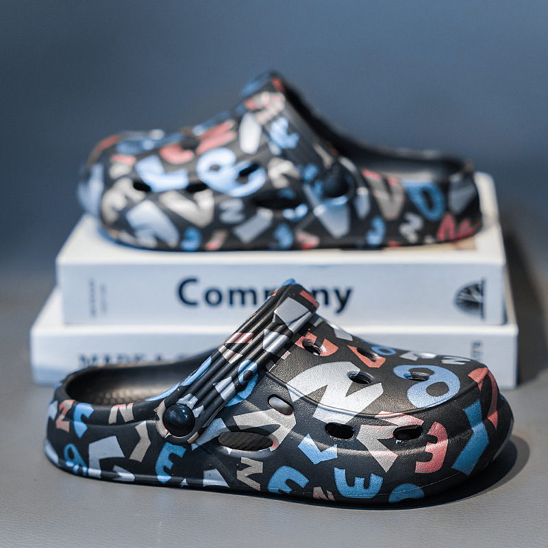 儿童洞洞鞋印花软底拖鞋男小孩拖鞋男童镂空女童凉鞋两穿沙滩鞋女