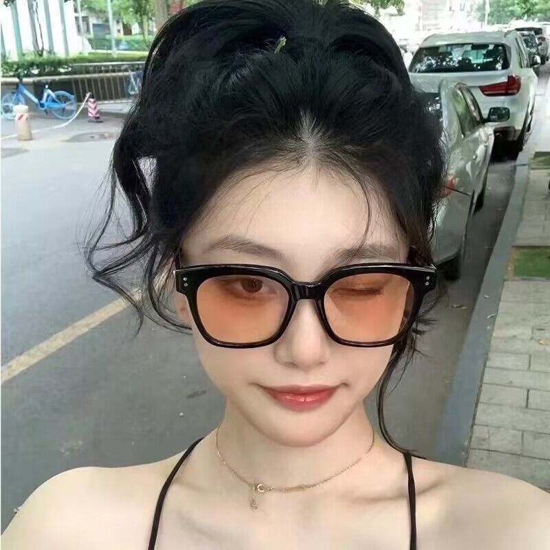 网红同款落日色眼镜黑框茶色渐变腮红墨镜女ins风高级感太阳镜男