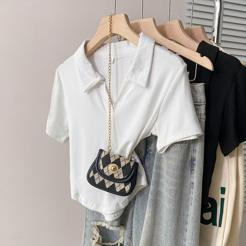 白色不规则polo领短袖t恤女夏季设计感小众短款正肩辣妹上衣