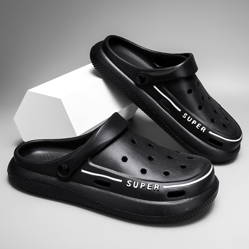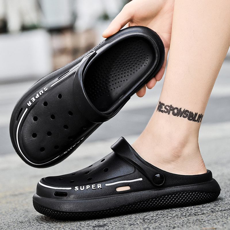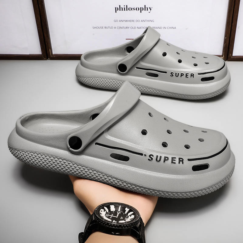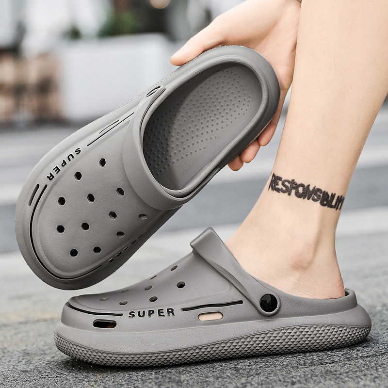 洞洞鞋男士夏季外穿花园鞋防滑包头两用凉鞋软底踩屎感沙滩拖鞋男