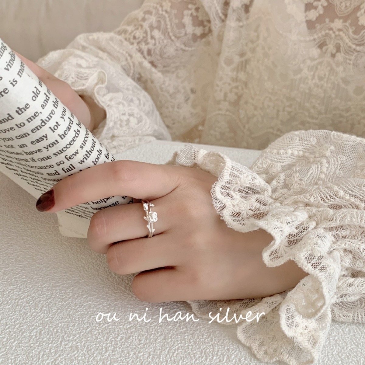 欧尼 S925纯银双层山茶花戒指女ins小众设计高级感冷淡风食指环