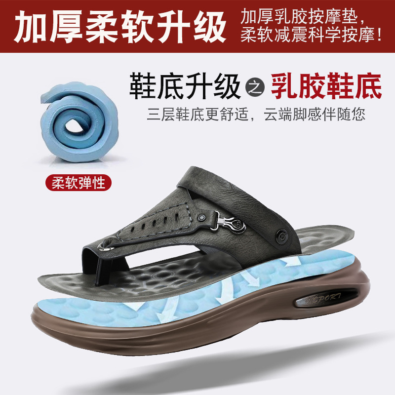 男士凉鞋新款高品质乳胶厚底沙滩凉鞋开车两用凉拖海边涉水防滑鞋