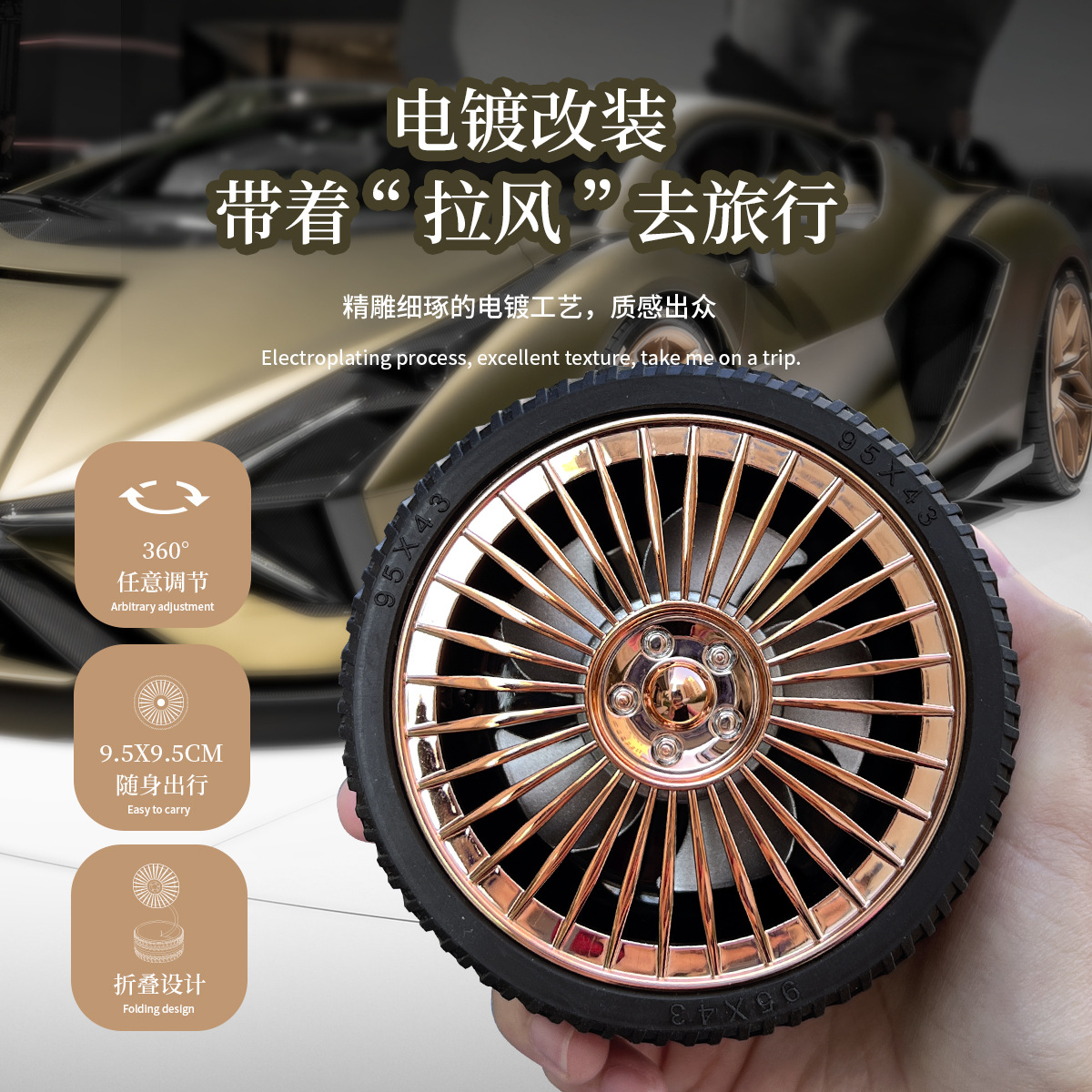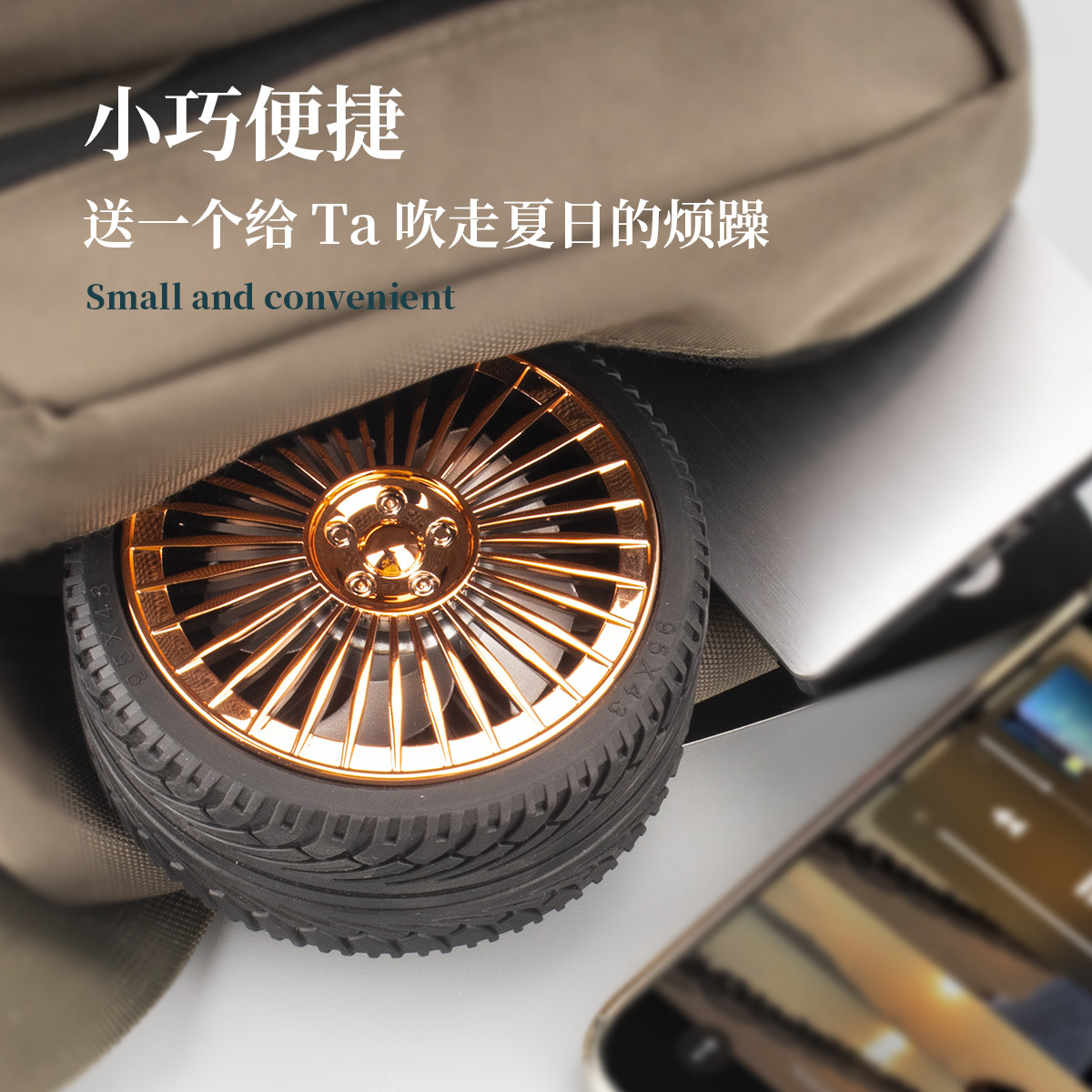 潮流创意电镀小风扇拉风复古车轮状电风扇车轮摆件usb续航小风扇
