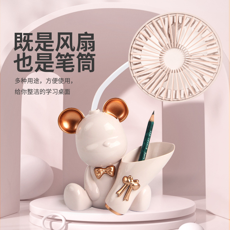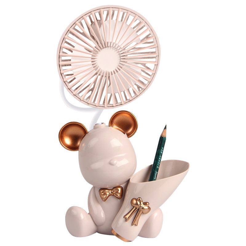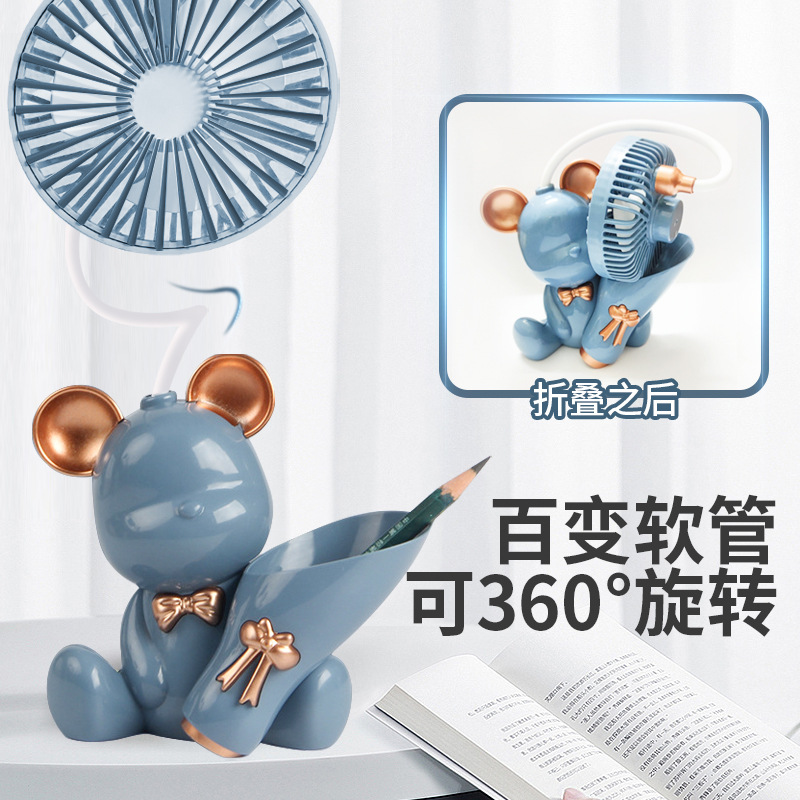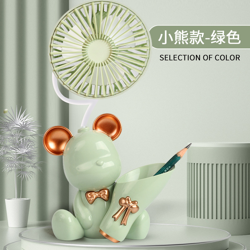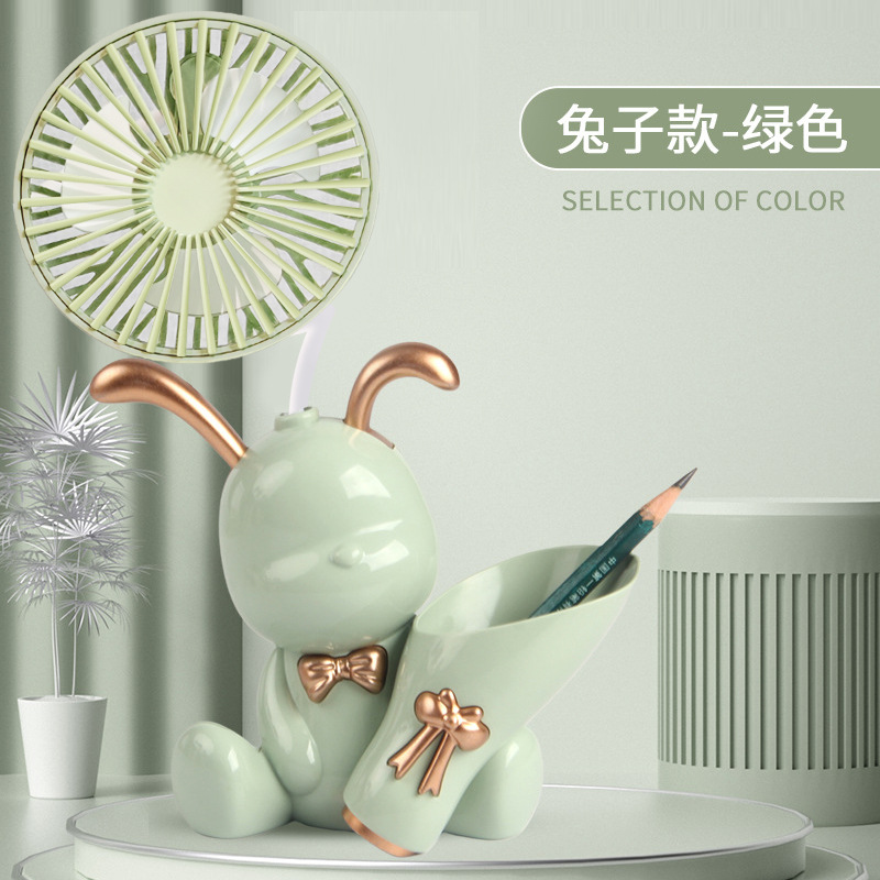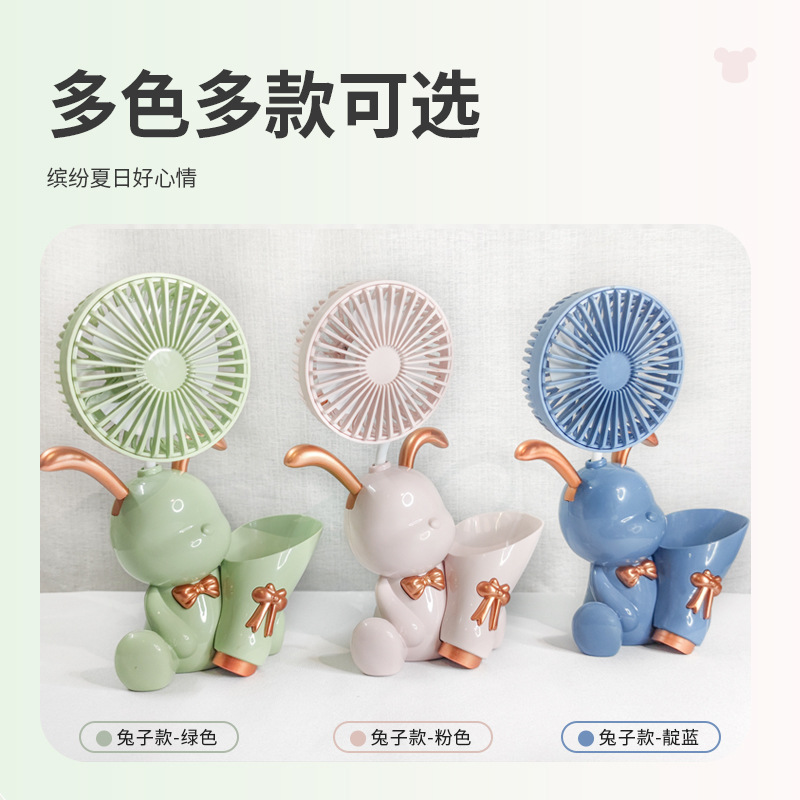 兔子小熊普通充电小风扇卷笔刀笔筒小型风扇桌面摆件小风扇
