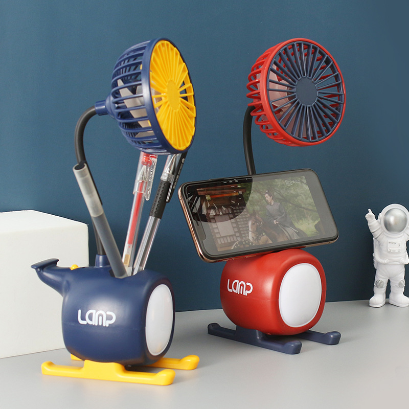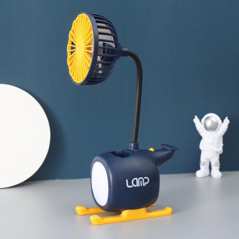 宇航直升机桌面风扇笔筒小夜灯USB充电款台式夜灯小风扇