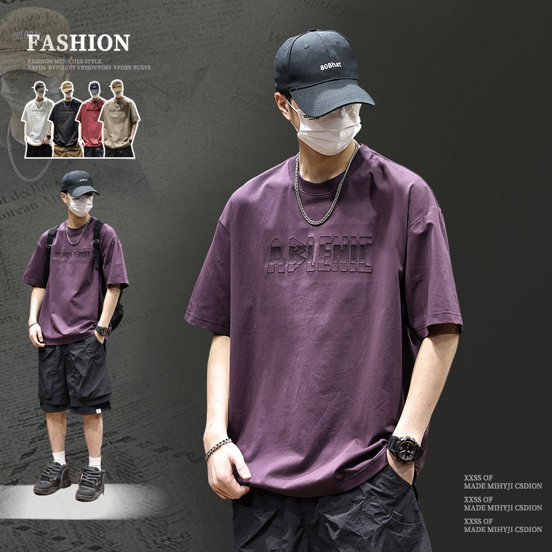 美式重磅短袖T恤男2025夏季薄款圆领凉感科技棉上衣宽松印花体恤