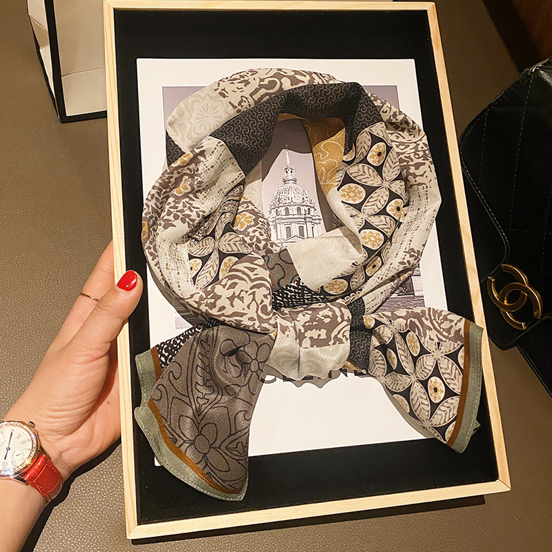新款拼色腰果花丝巾女春夏丝绸印花薄款围巾12姆米缎面丝巾领巾