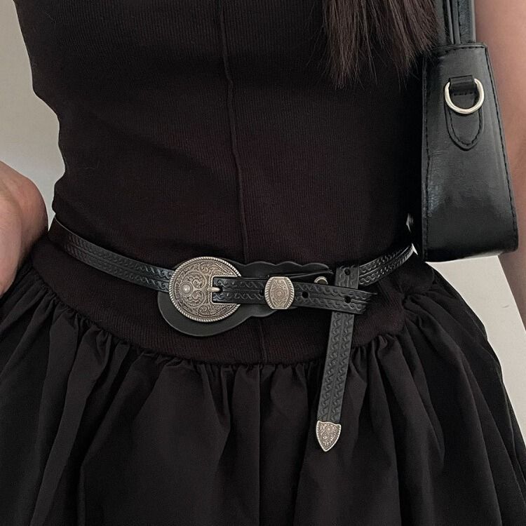 真皮皮带女细设计感小众休闲百搭波西米亚装饰复古民族风雕花腰带