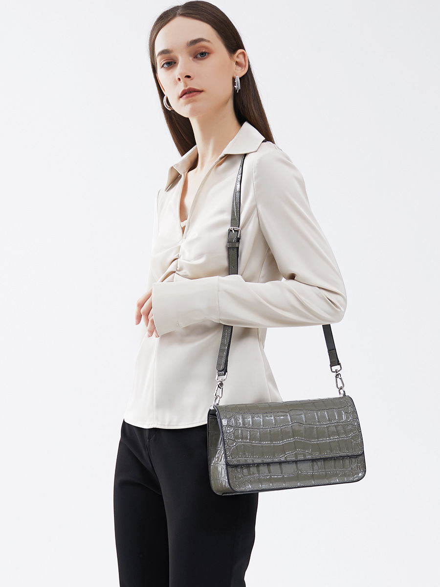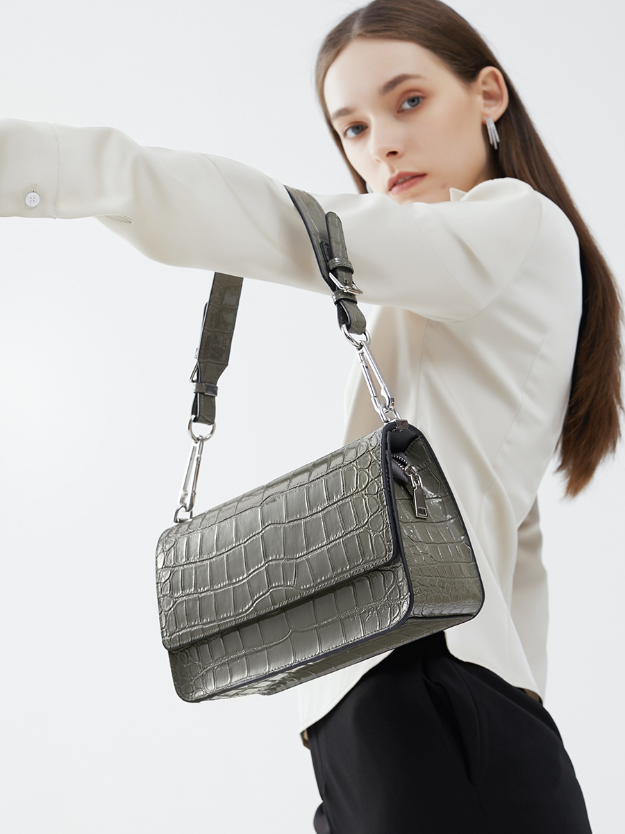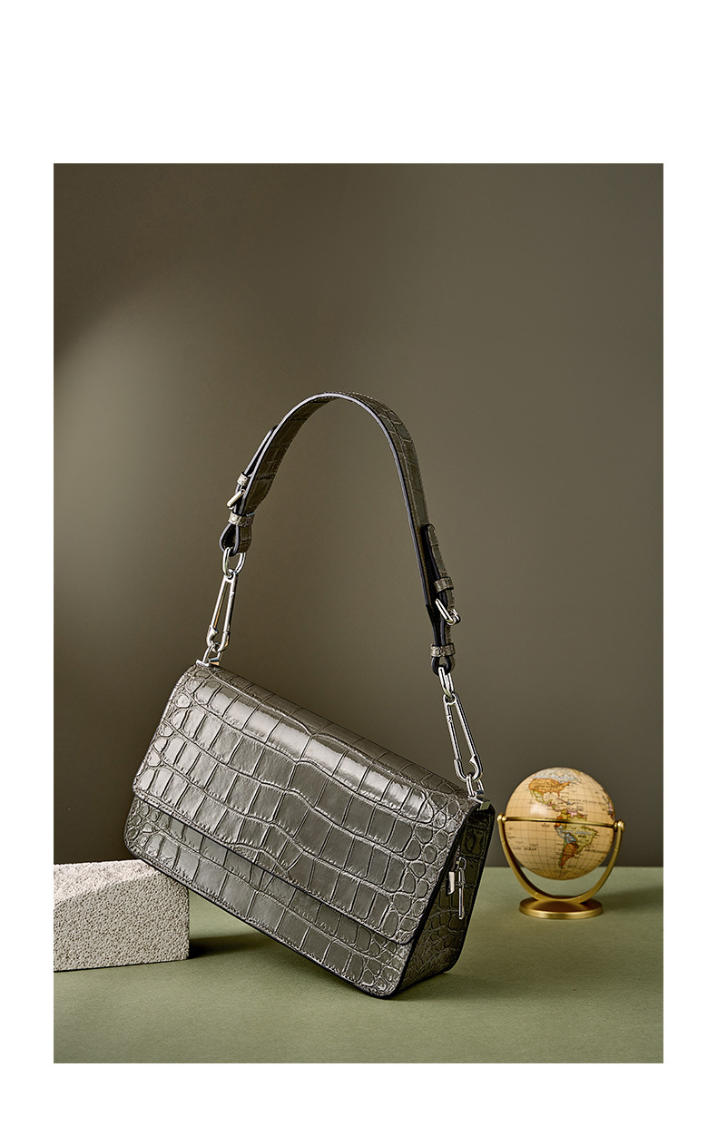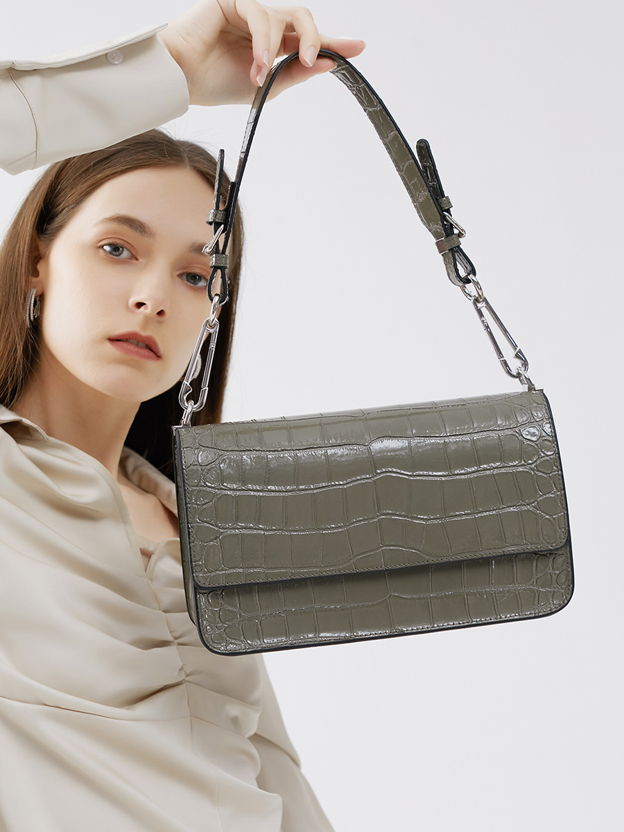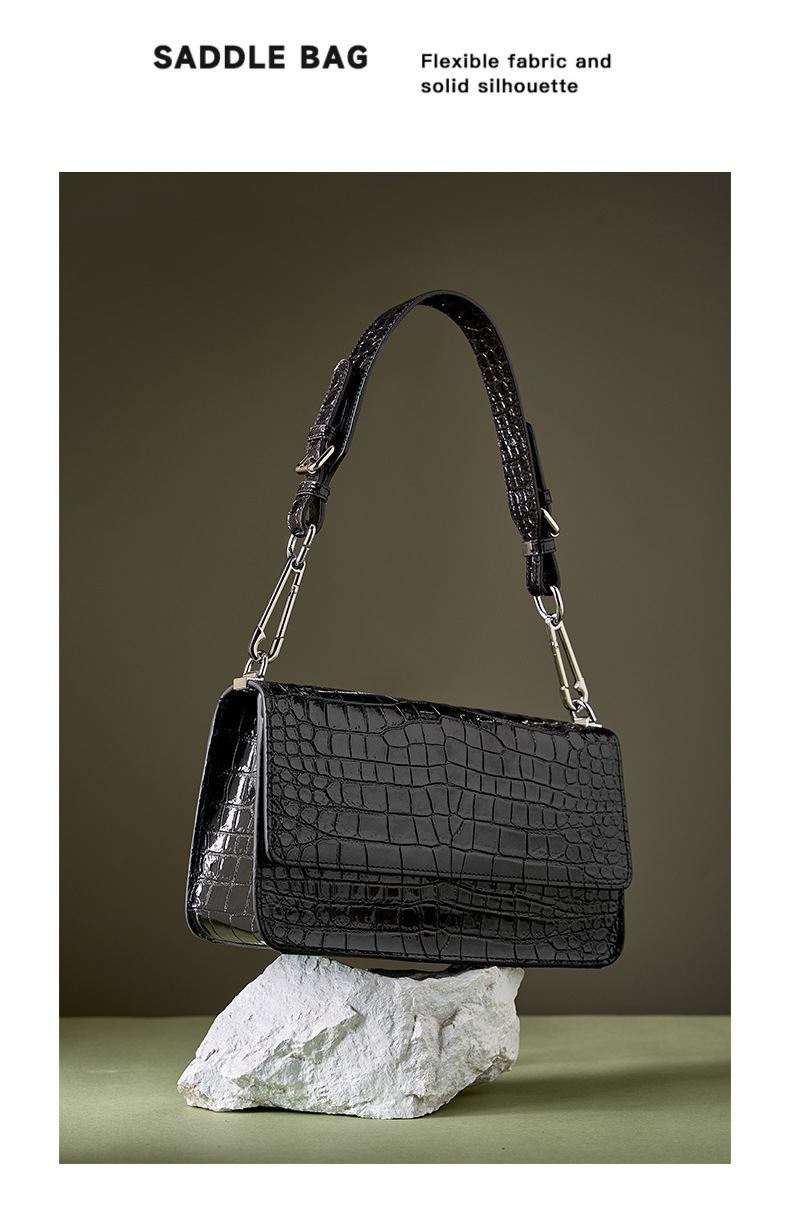 新款高级感单肩法棍腋下包时尚真皮女包鳄鱼纹斜挎包潮