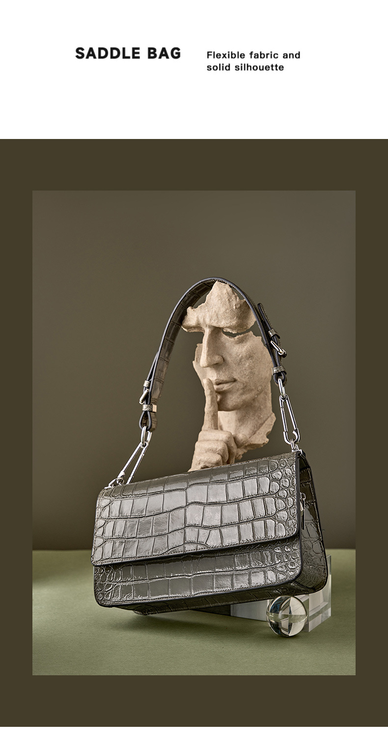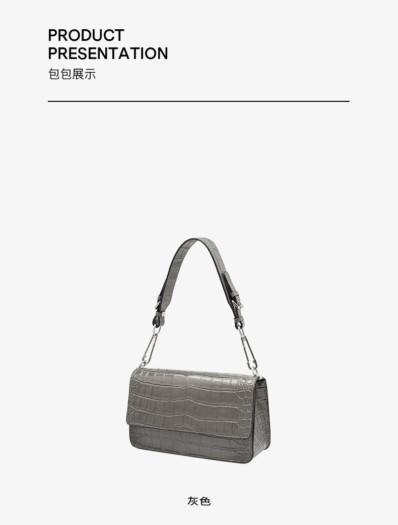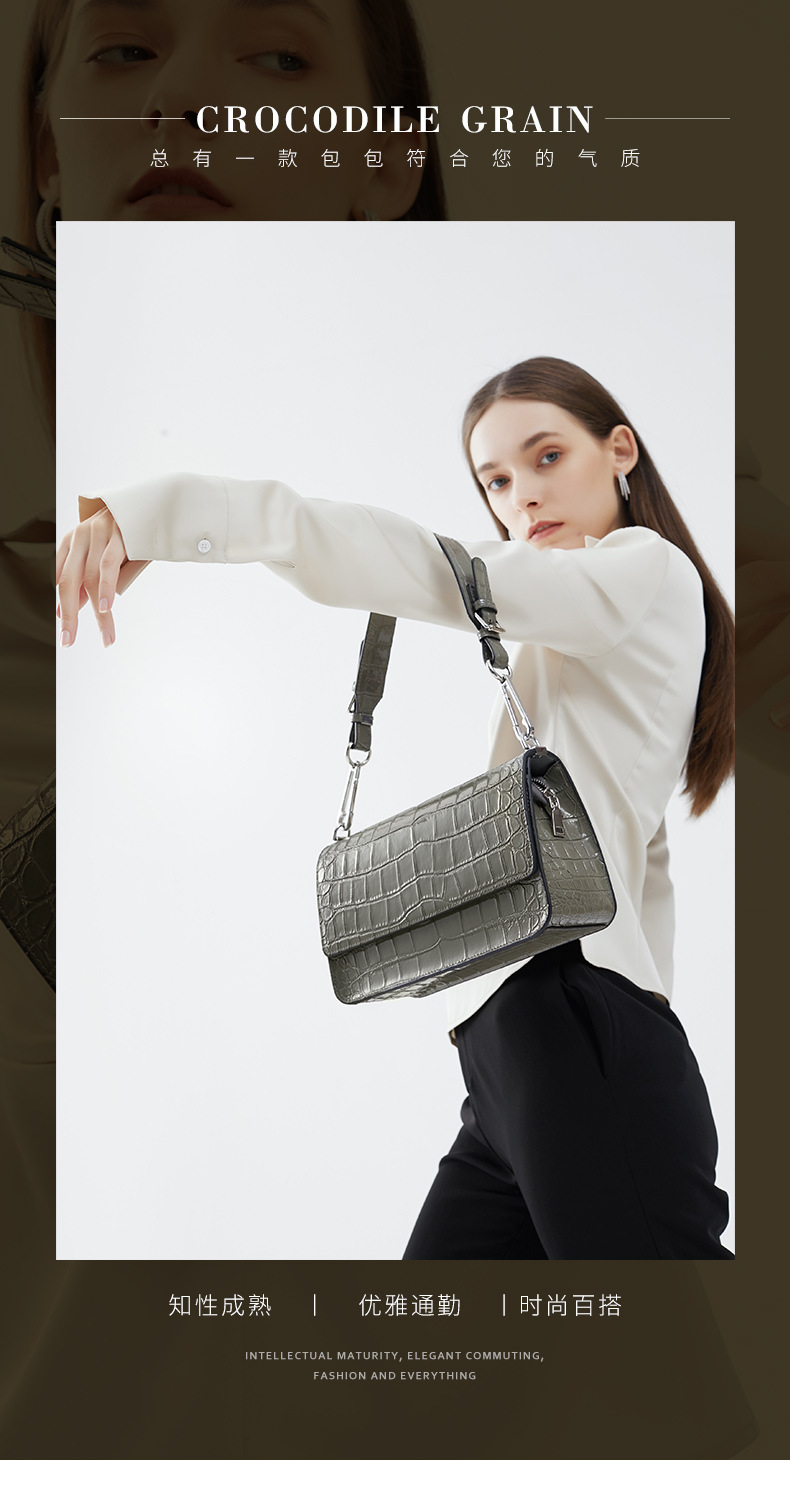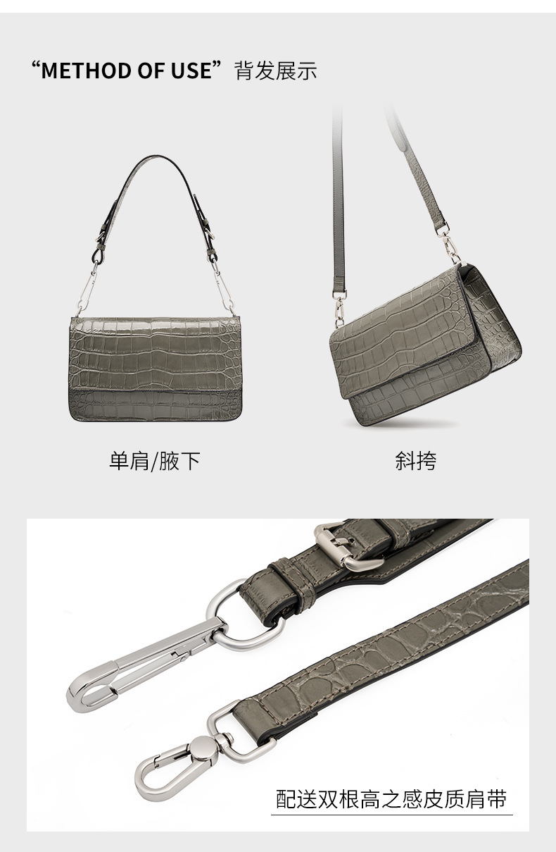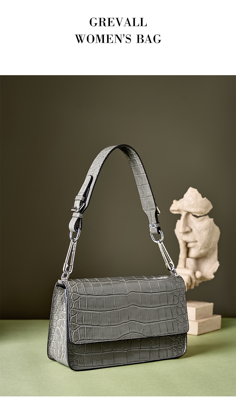 新款高级感单肩法棍腋下包时尚真皮女包鳄鱼纹斜挎包潮