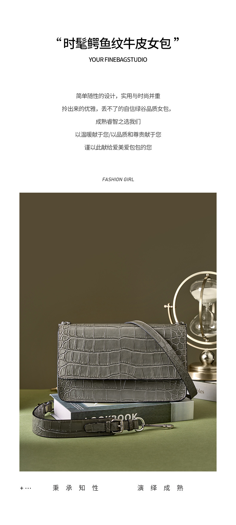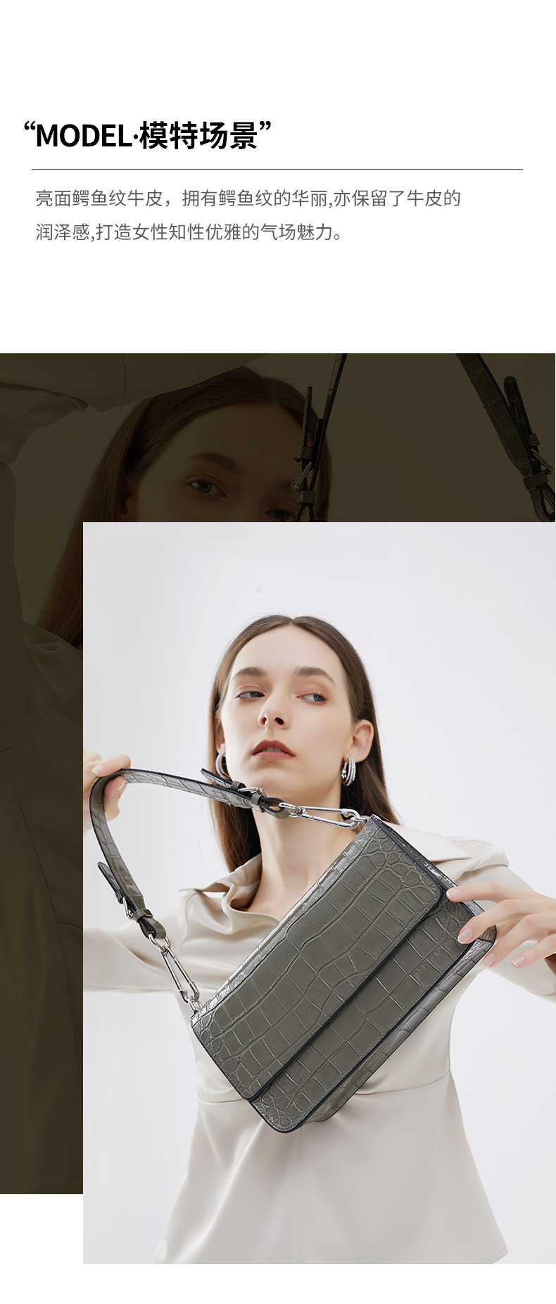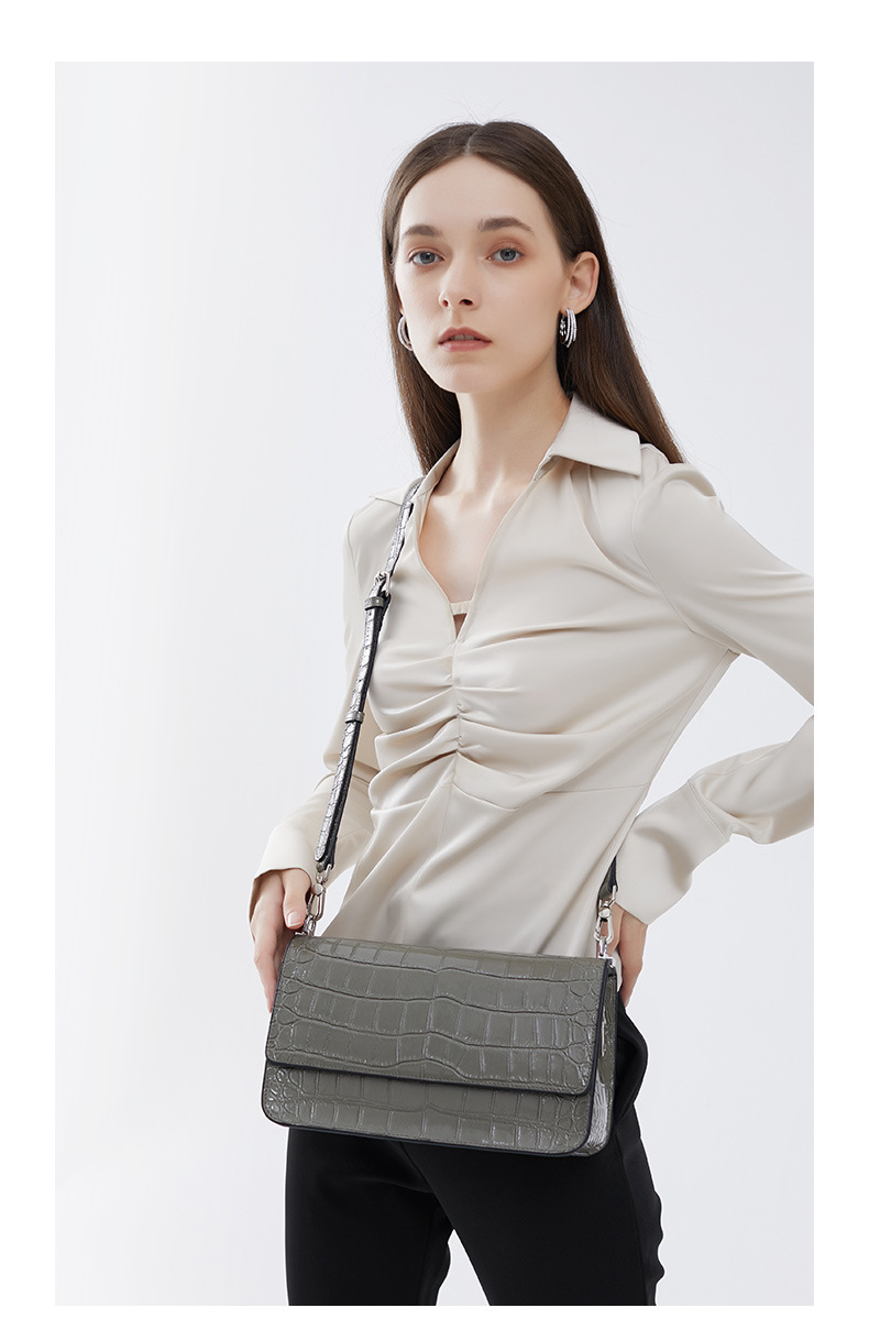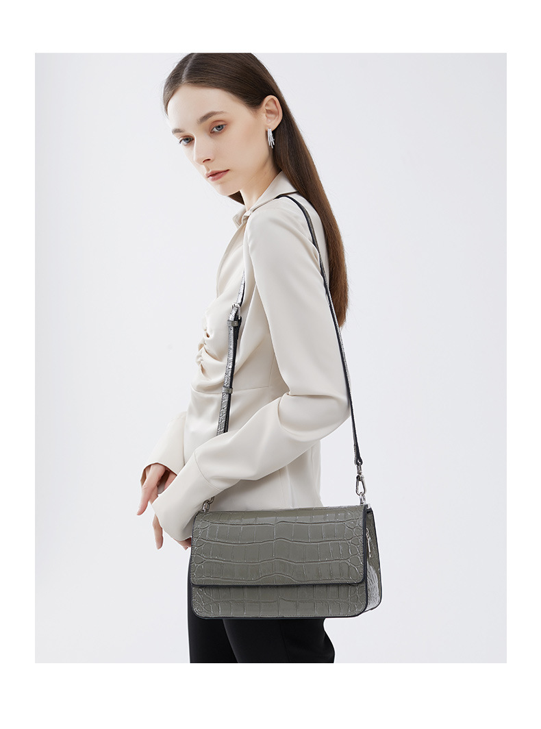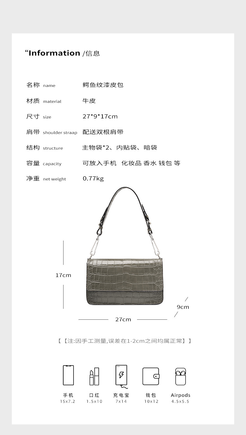 新款高级感单肩法棍腋下包时尚真皮女包鳄鱼纹斜挎包潮