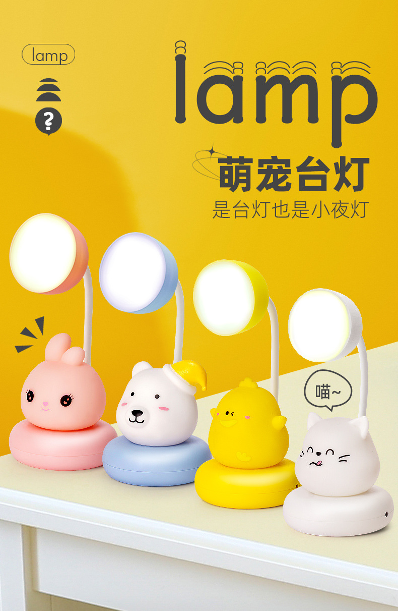 新型LED光源小台灯卡通萌宠小台灯节能USB省电护眼小夜灯治愈小台