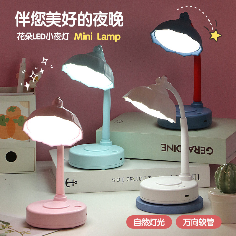 简约花朵LED台灯卧室床头睡眠灯USB充电式便携床头小夜灯