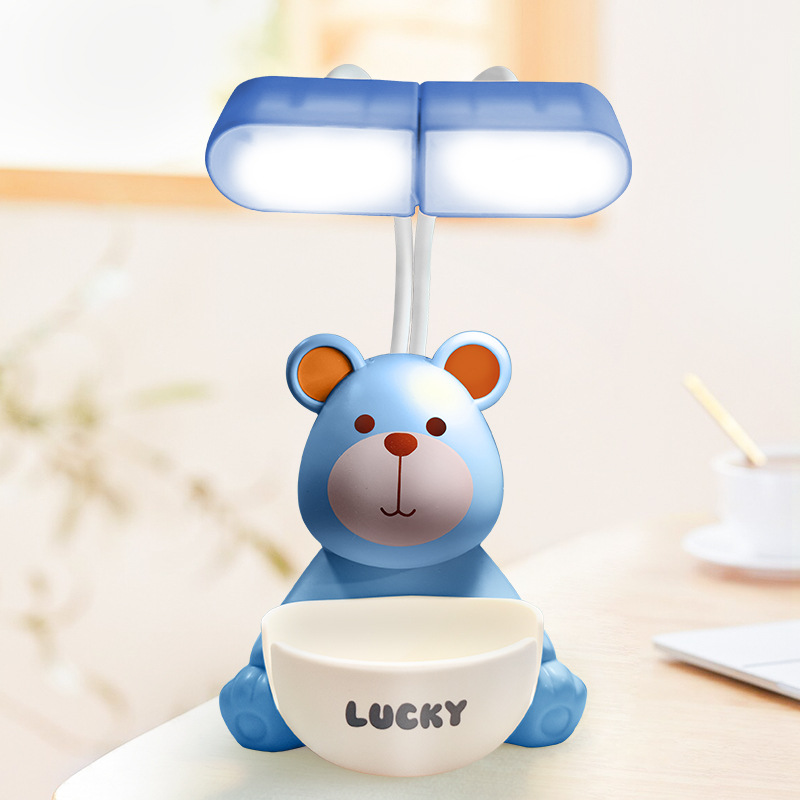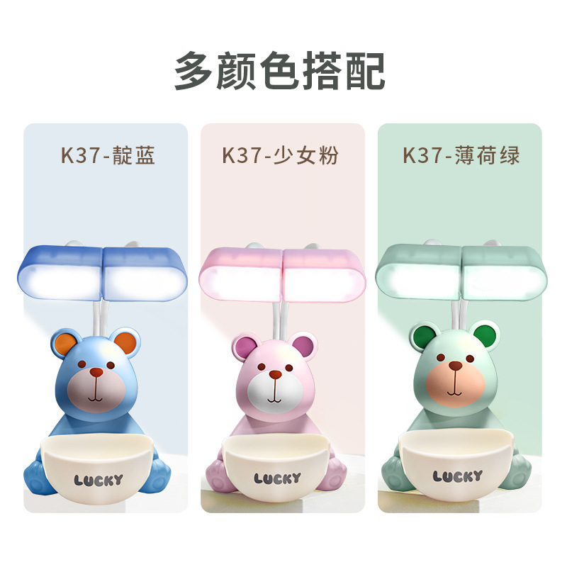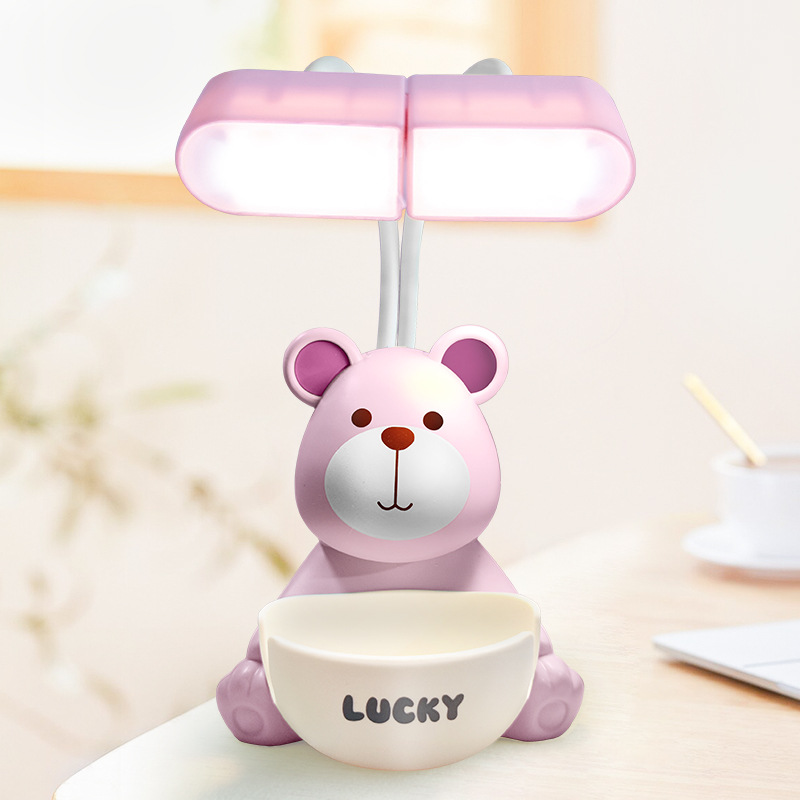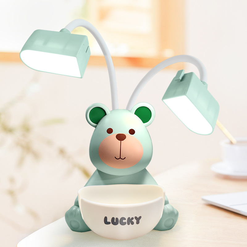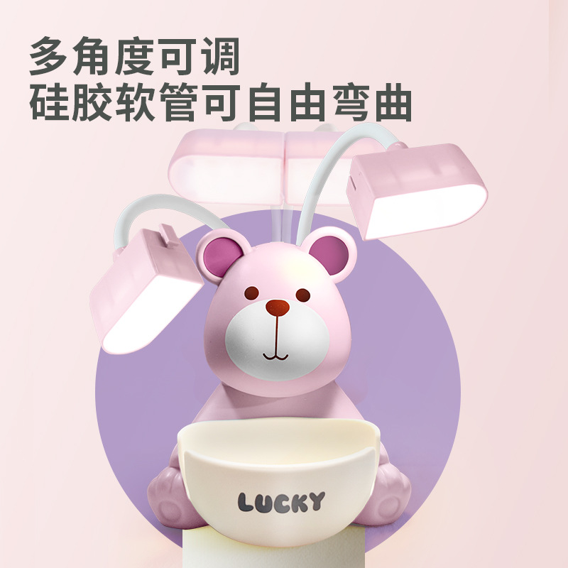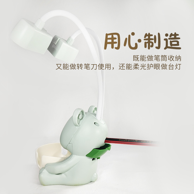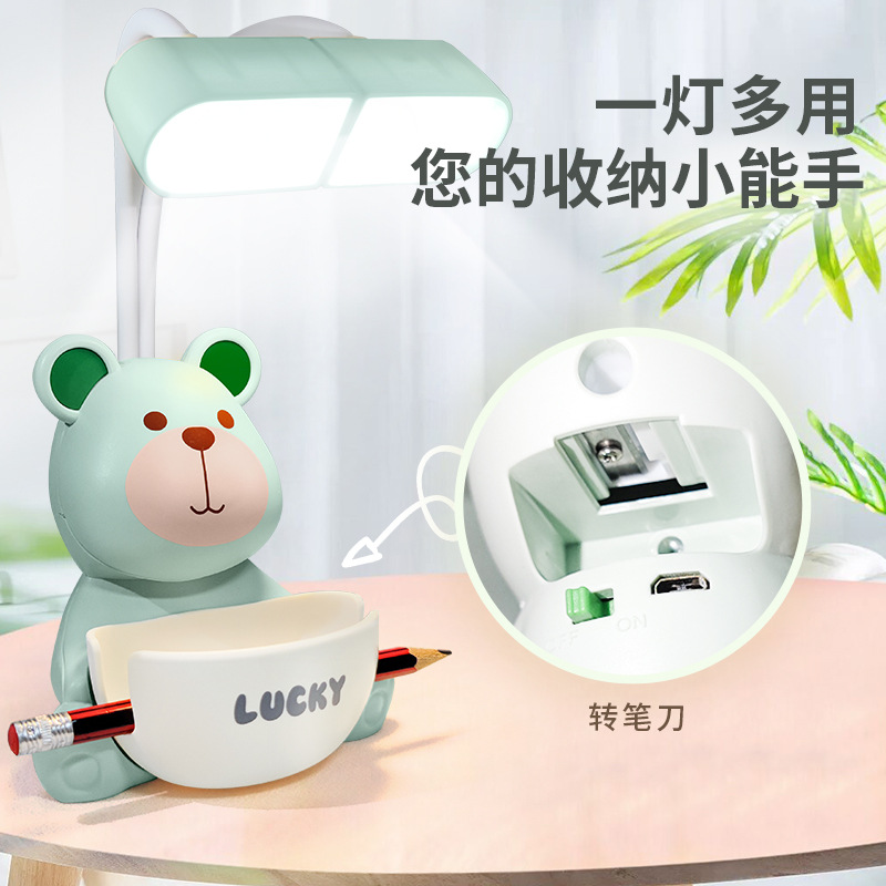 卡通小熊双头LED铅笔削笔筒台灯宿舍阅读USB充电小夜灯学习护眼灯