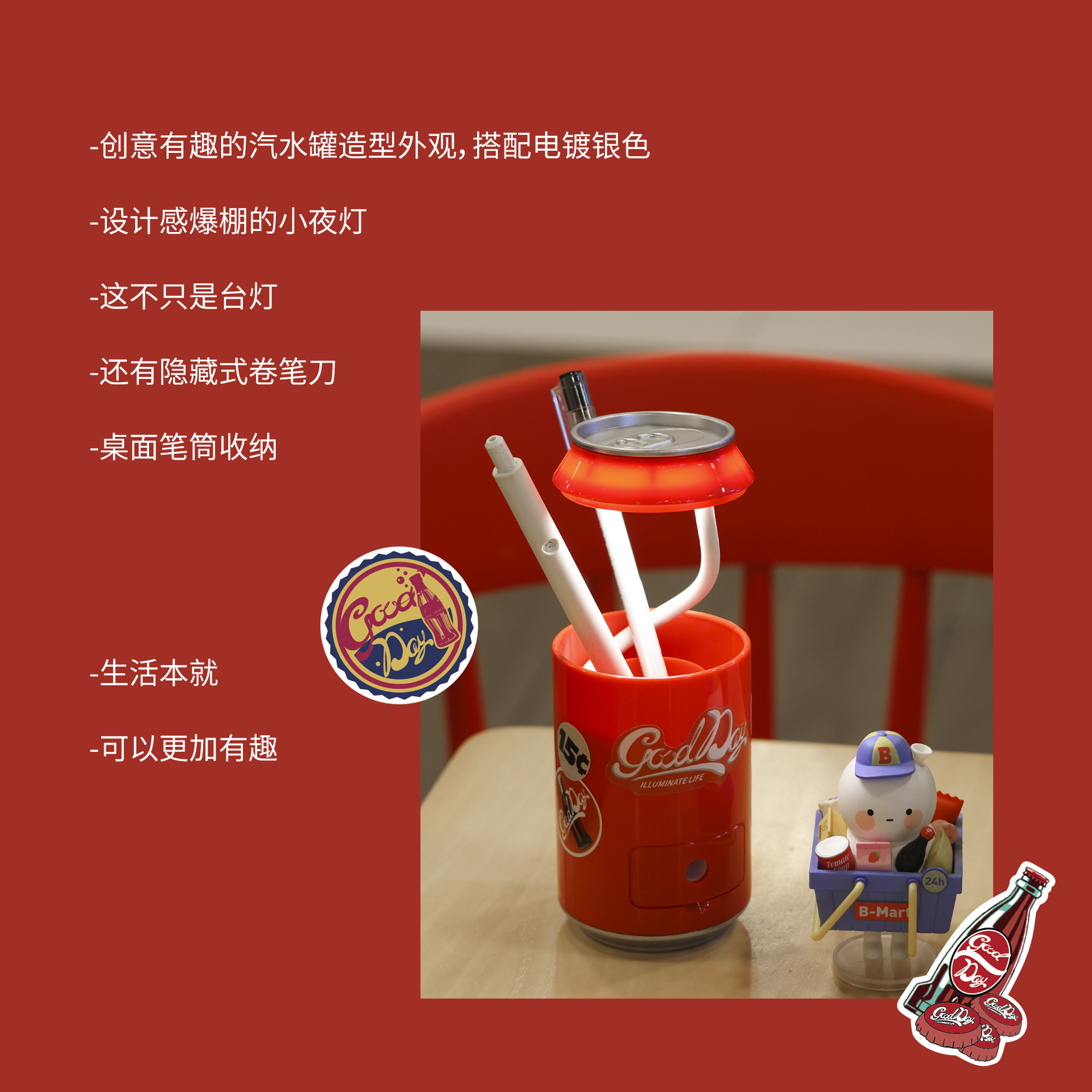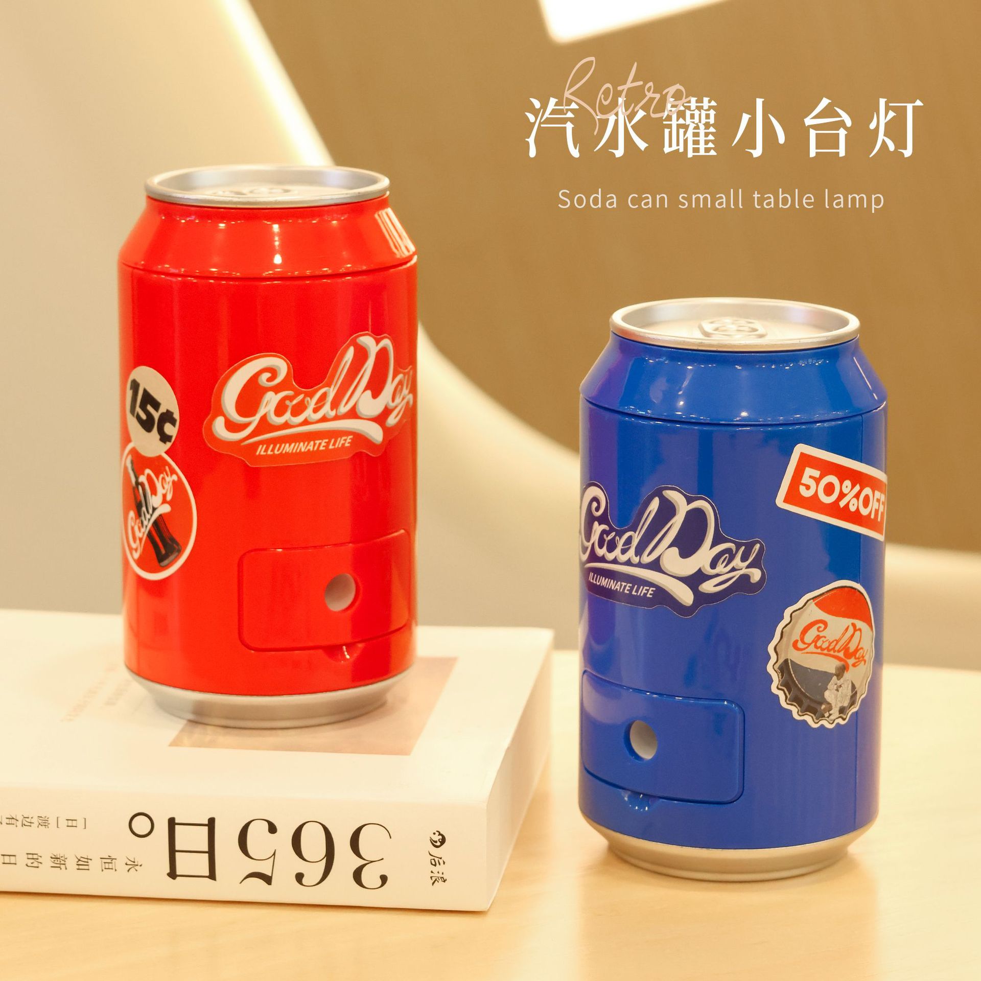 新品汽水罐USB充电小台灯软管折叠带卷笔刀小夜灯迷你床头睡眠灯