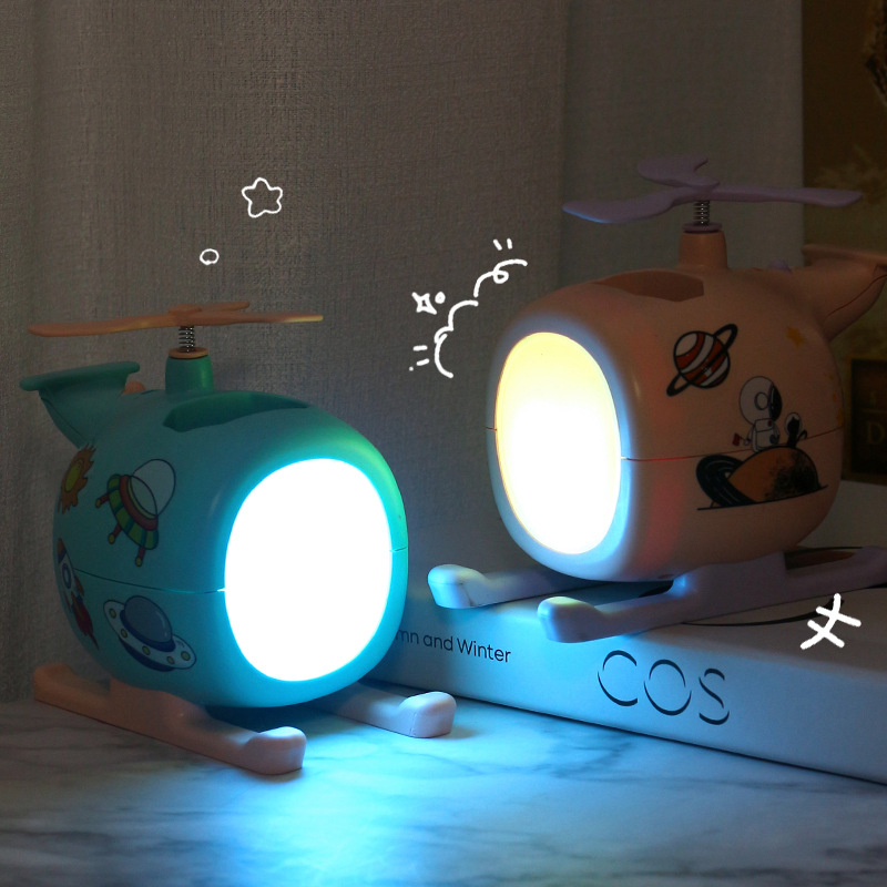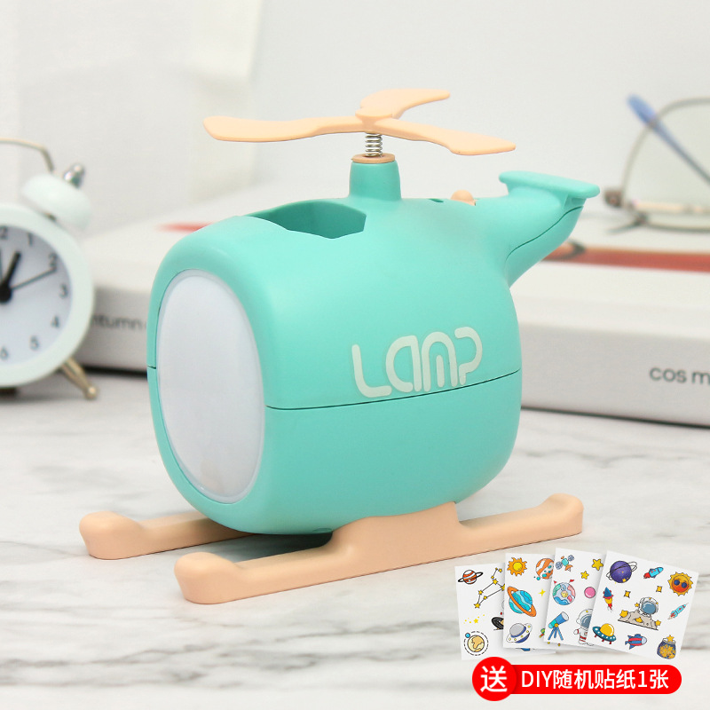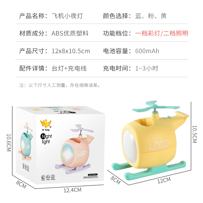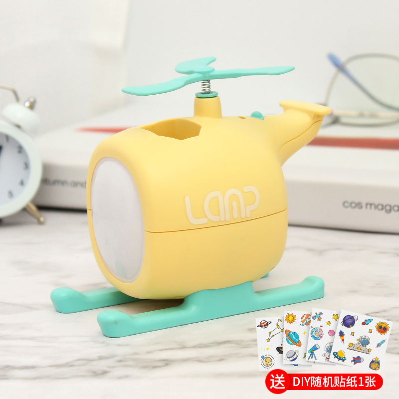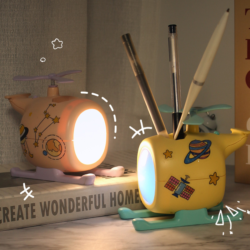 新款多功能飞机小夜灯USB充电卡通笔筒台灯桌面支架手持照明灯