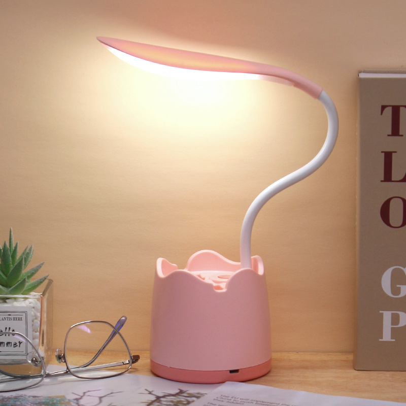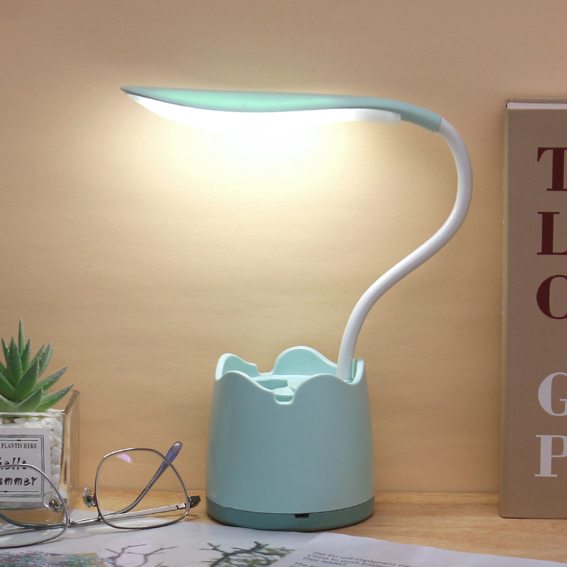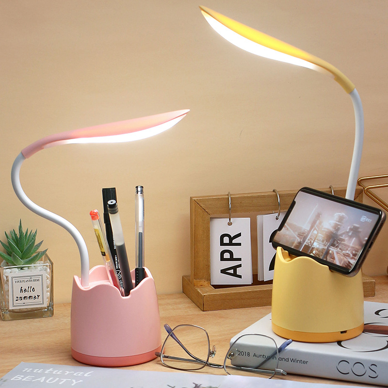柔光护眼多功能阅读台灯无蓝光手机支架台灯宿舍卧室创意笔筒台灯