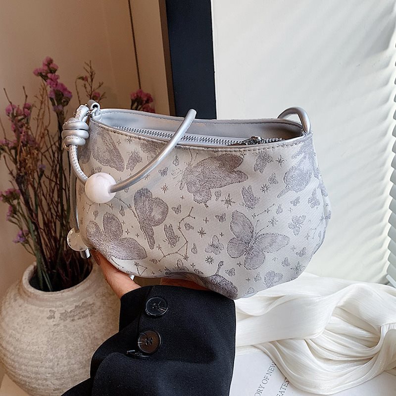 高品质腋下包夏季新款小众设计铃铛圆筒包银色百搭单肩手提包