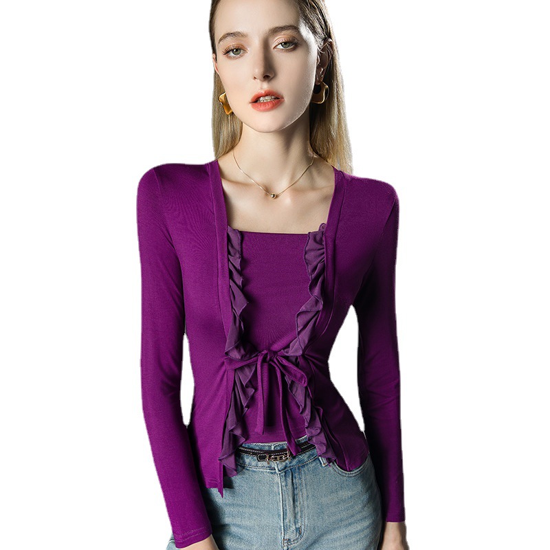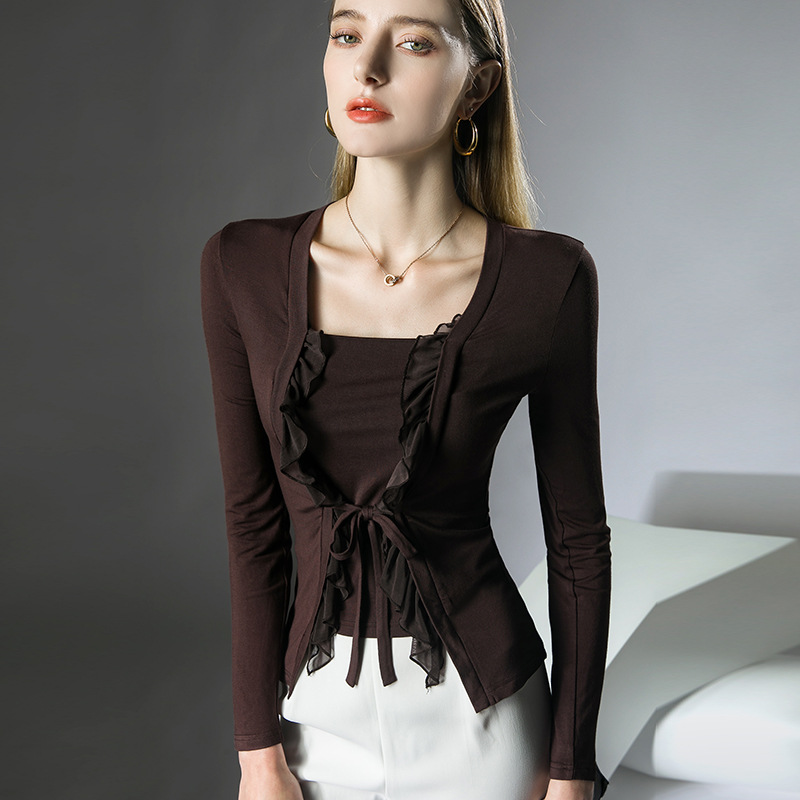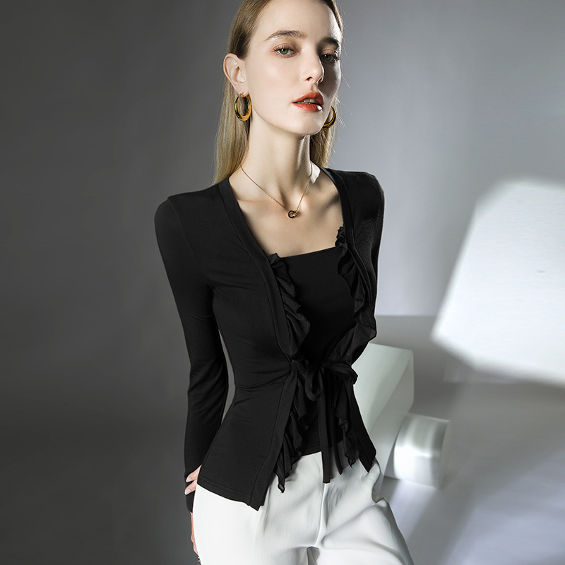 设计感木耳边上衣春夏新款长袖洋气复古欧货小衫