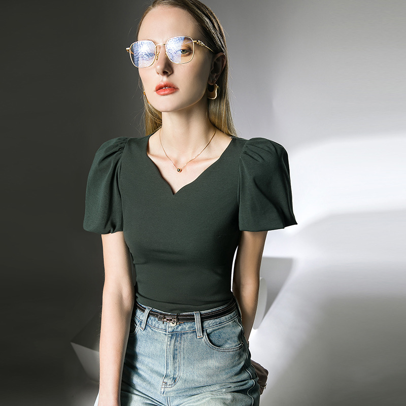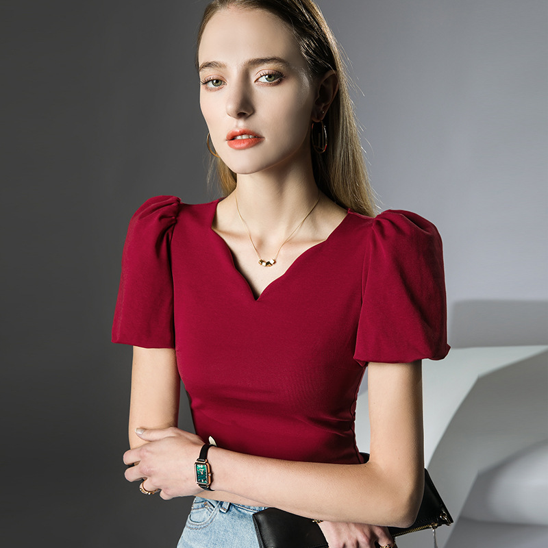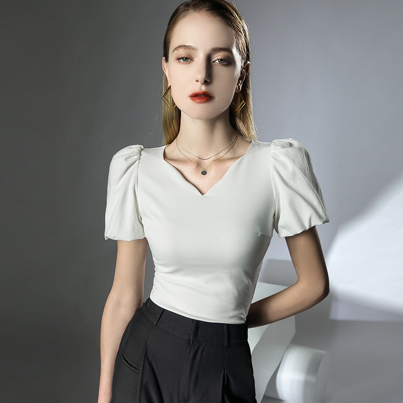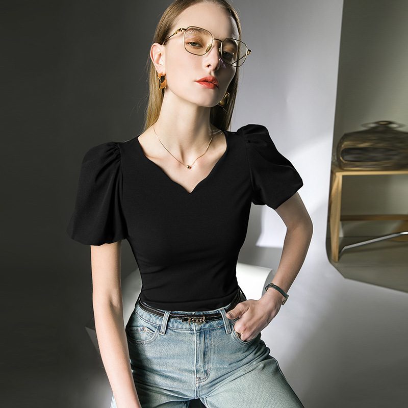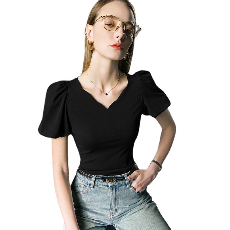 设计感泡泡袖上衣夏季新款短袖洋气复古