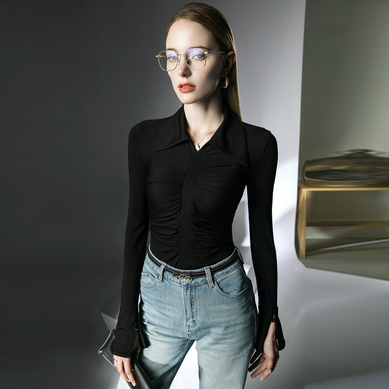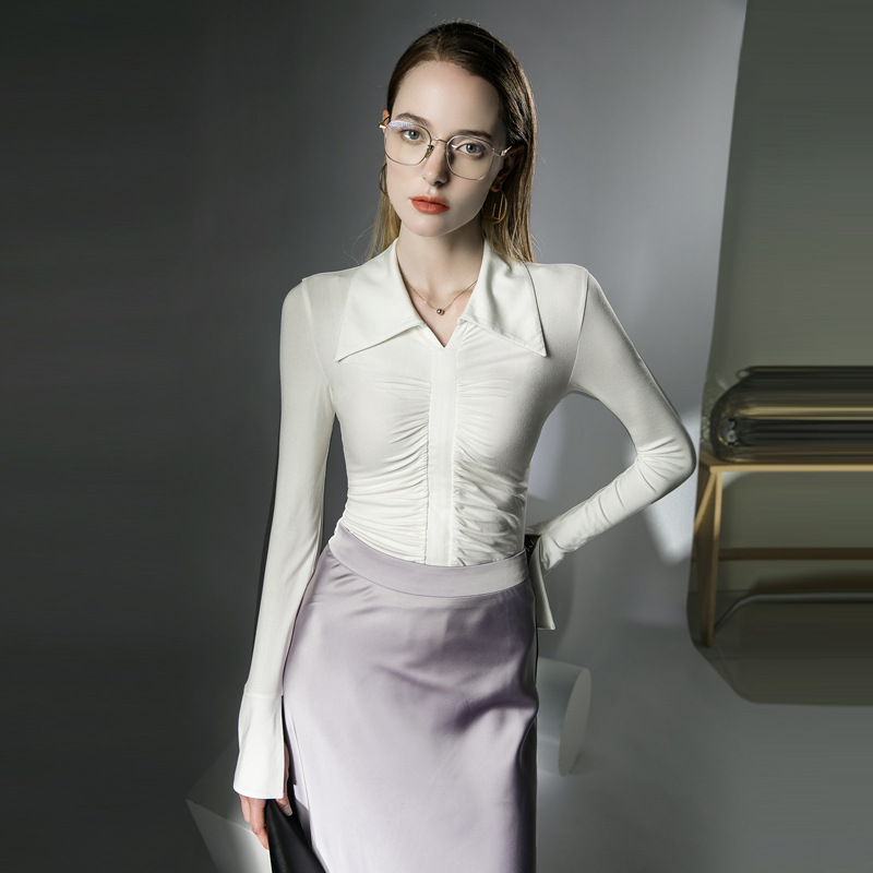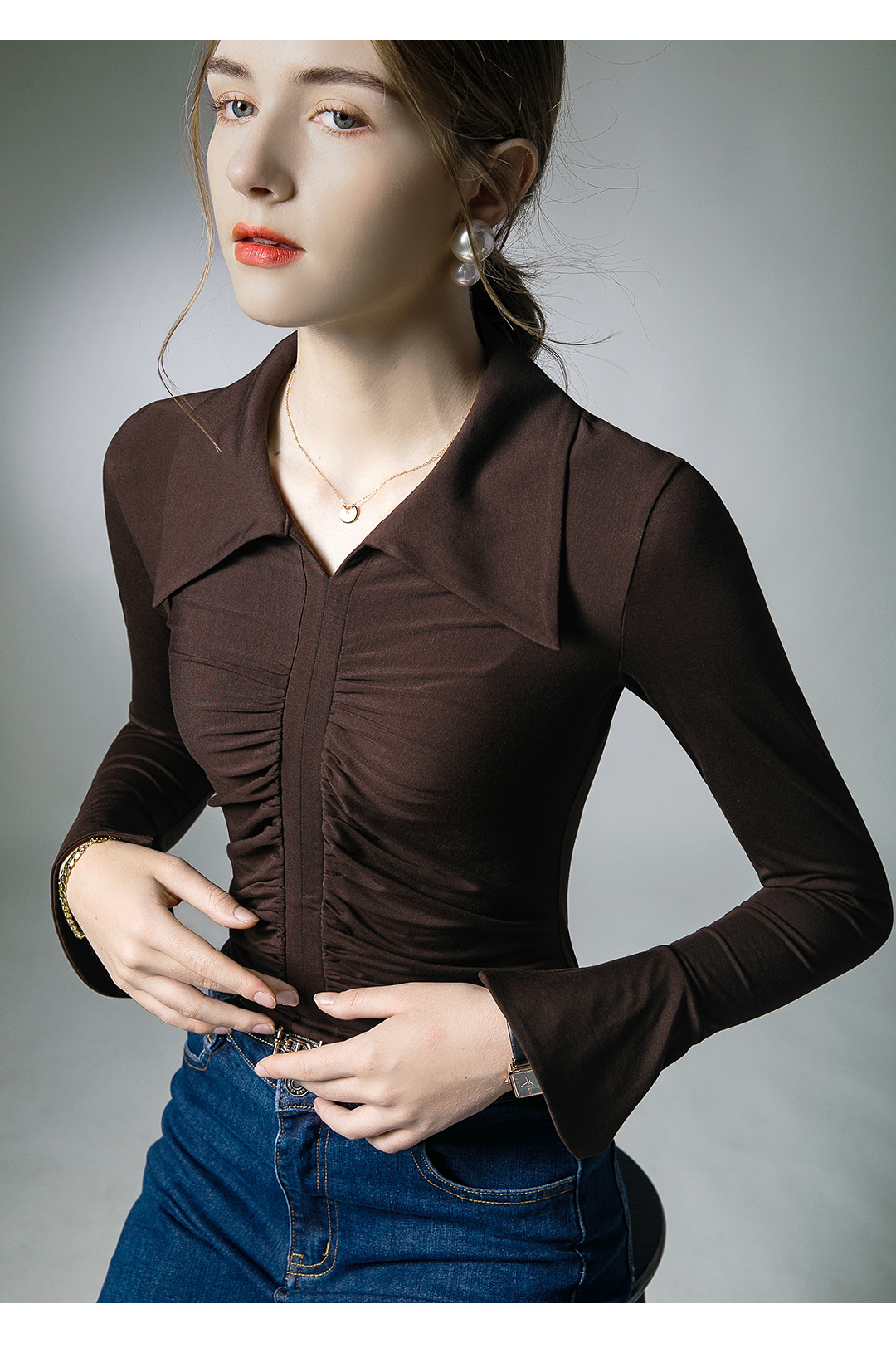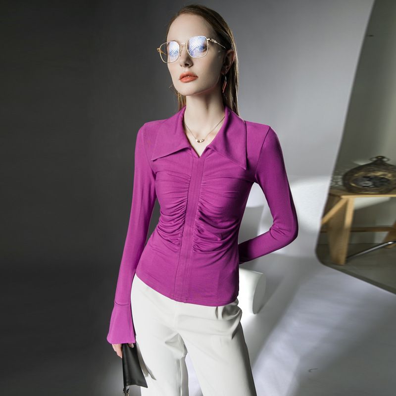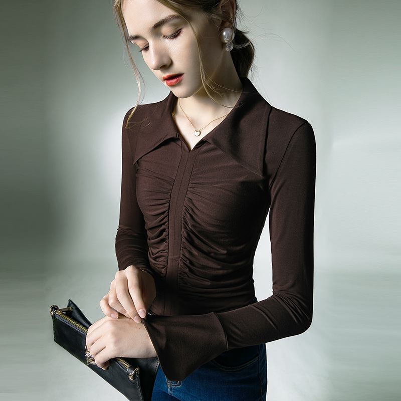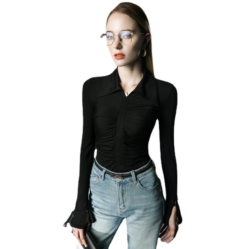 春秋新款设计感褶皱长袖内搭打底衫洋气欧货上衣