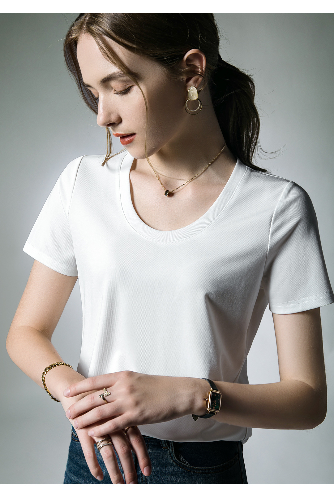 潮流时尚圆领白色上衣秋季新款宽松短袖通勤休闲百搭T恤