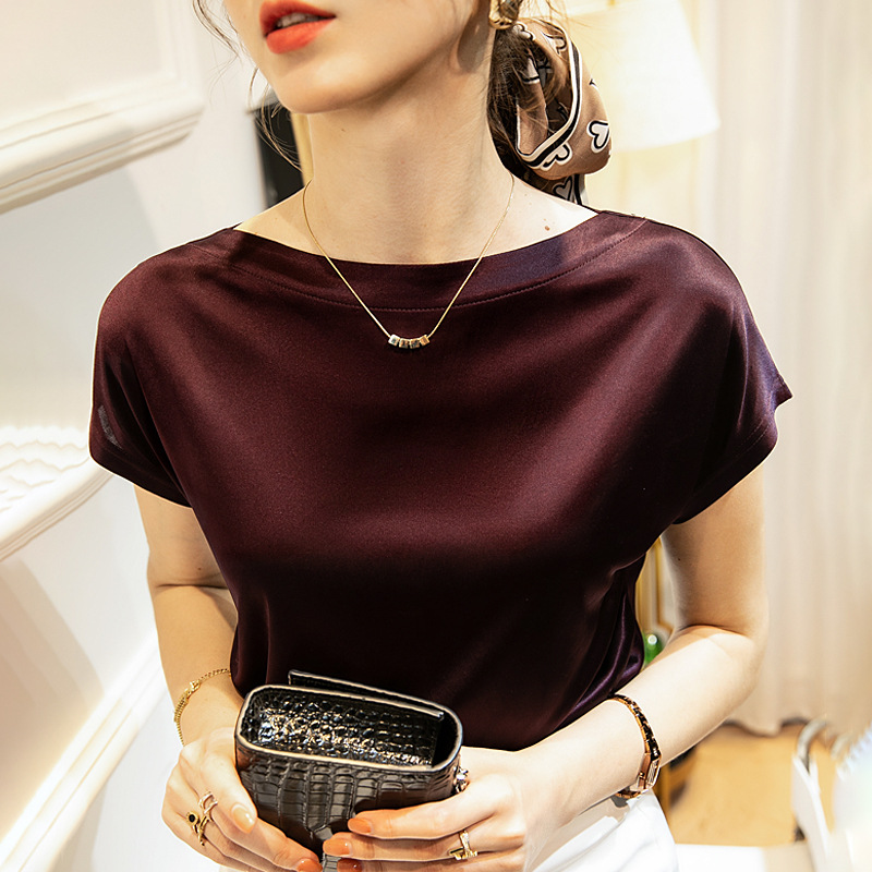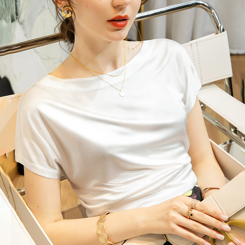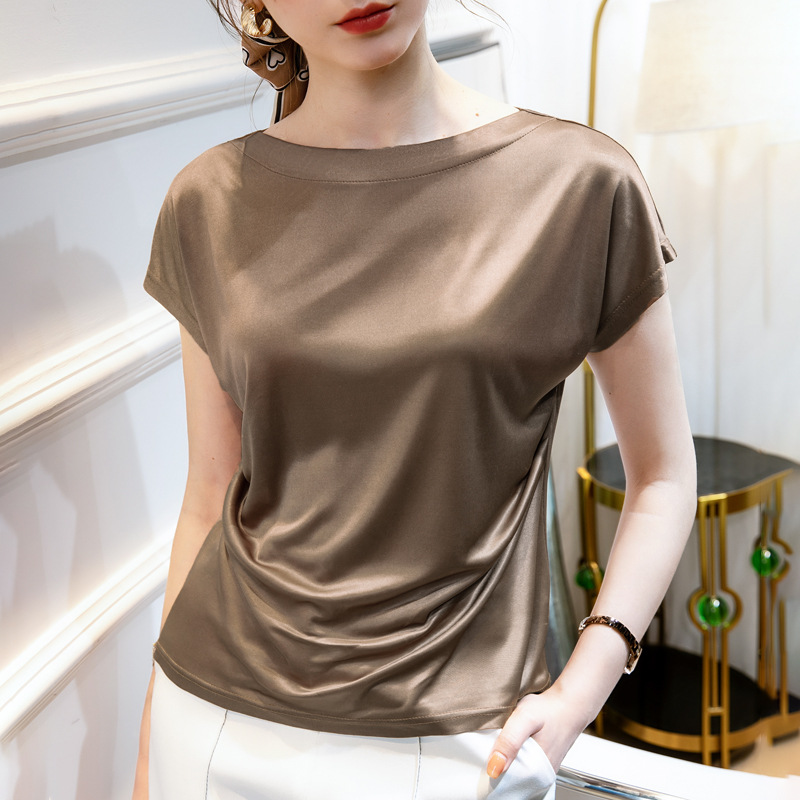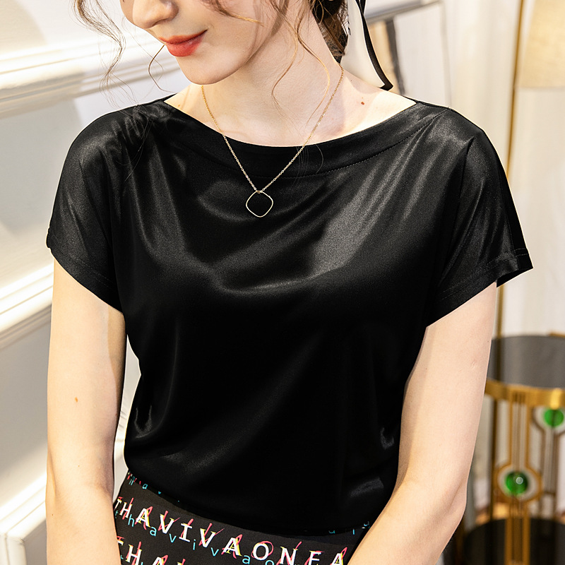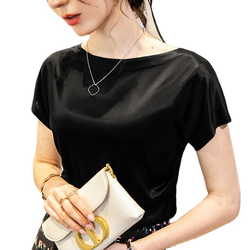 夏装新款优雅短袖丝光T恤洋气打底衫丝滑光泽感上衣