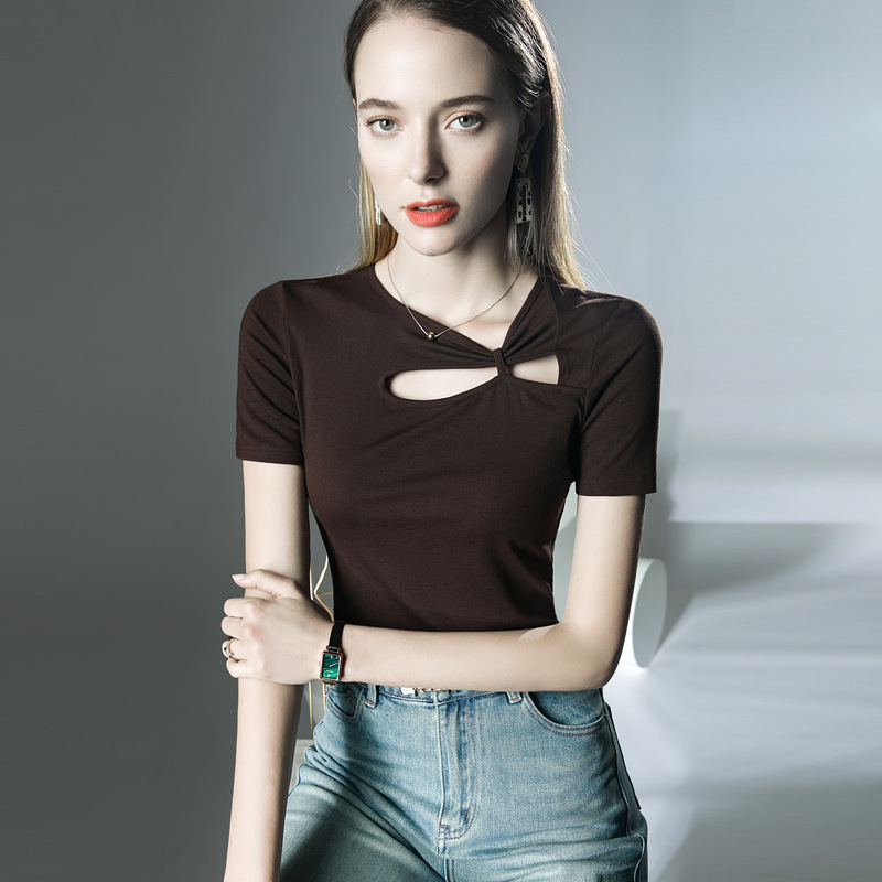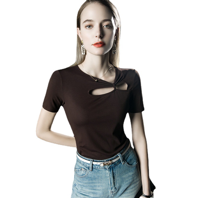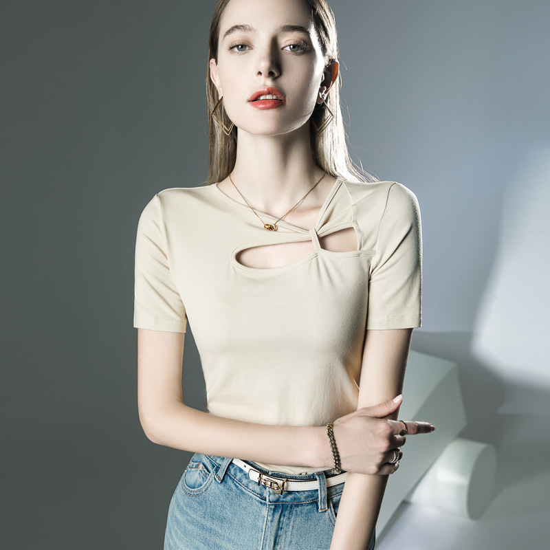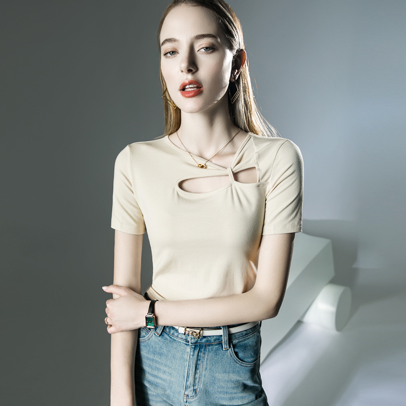 设计感短袖洋气夏季新款T恤镂空不规则上衣