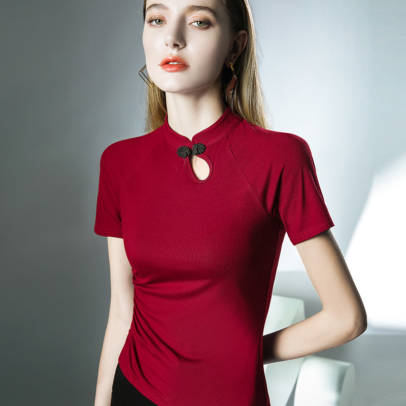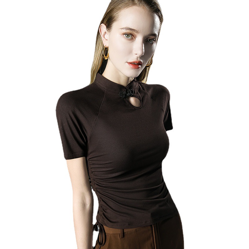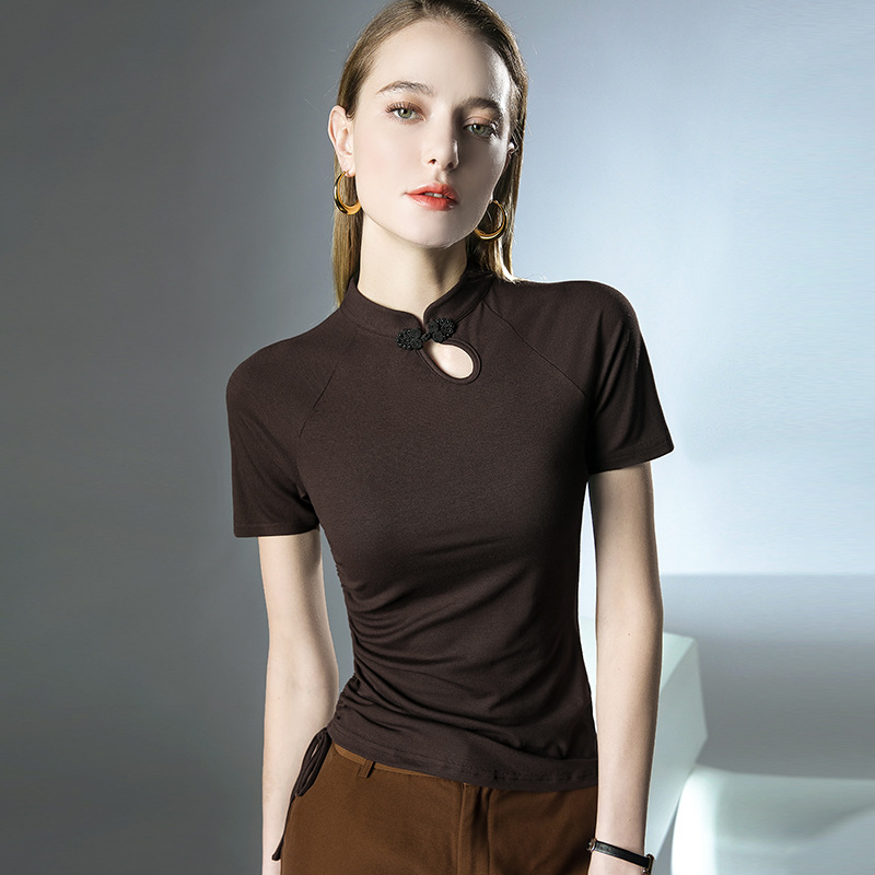 复古盘扣短袖夏季新款洋气中式立领T恤设计感