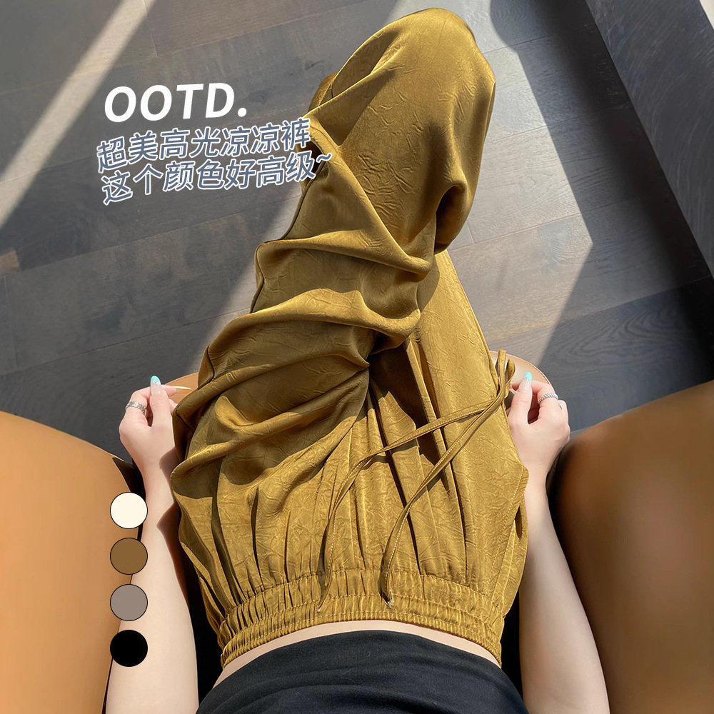 国风醋酸缎面裤子女夏薄款2025新款高腰垂感休闲直筒冰丝阔腿裤子