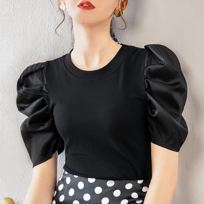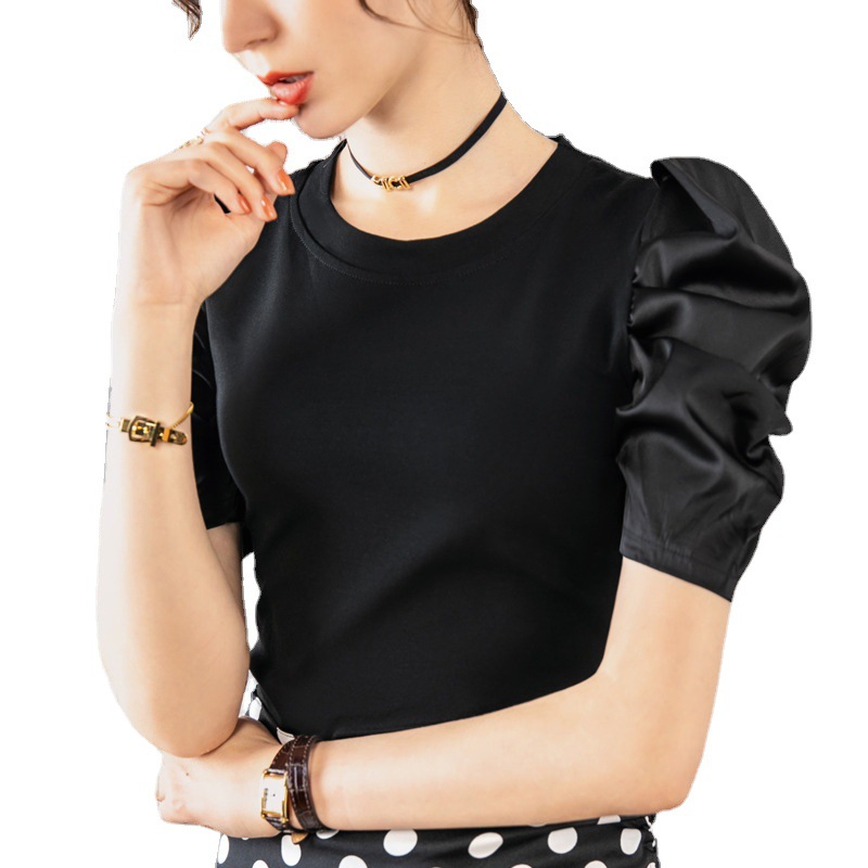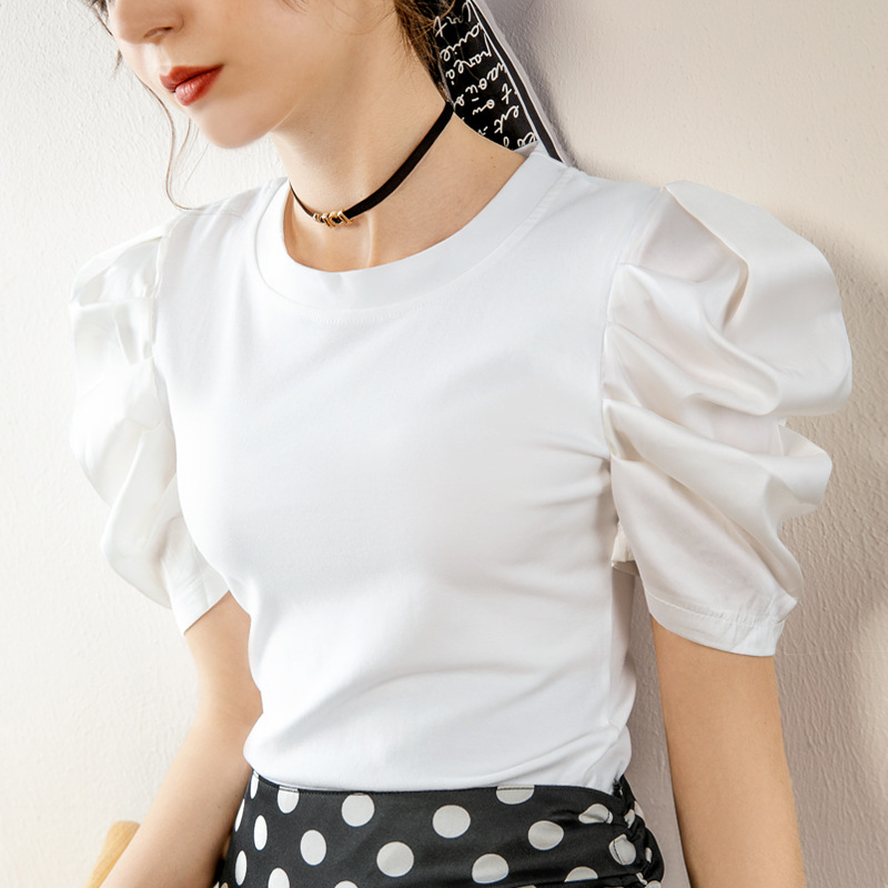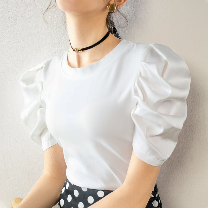 夏装新款白色T恤女复古泡泡袖气质短袖上衣洋气小衫